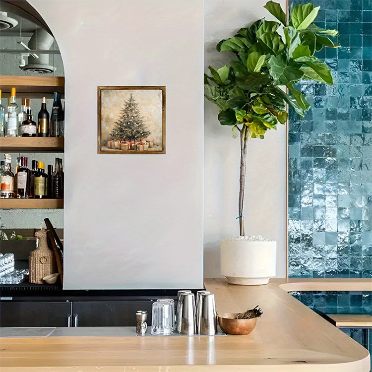 VINTAGE CHRISTMAS ARTWORK - Adds a timeless, festive charm to your home decor. The classic Christmas tree scene evokes a warm, nostalgic feeling, creating a cozy and inviting atmosphere for the holiday season.