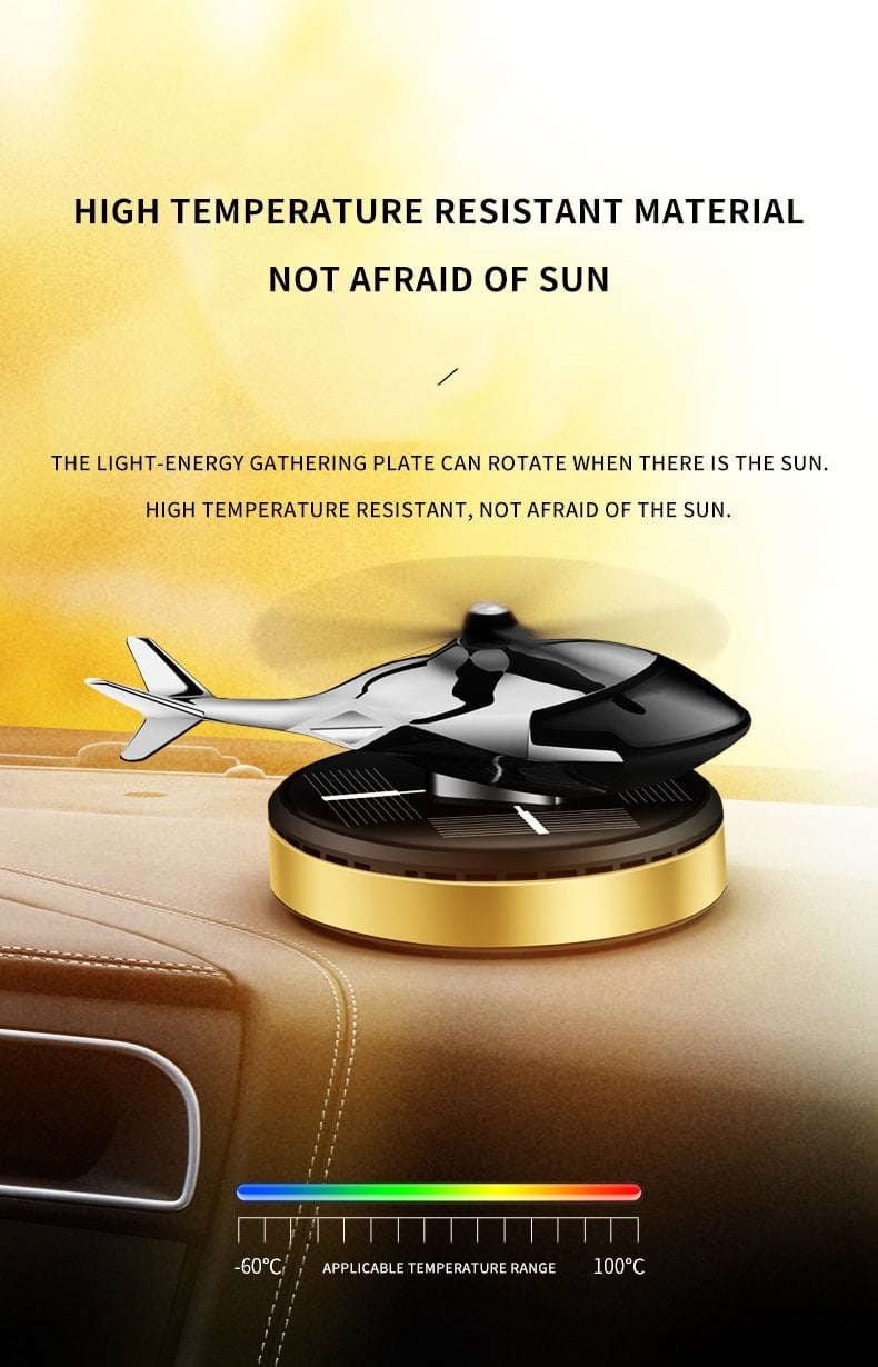 ☞ You want to decorate your car, want to make it looks more exclusive but also change your car atmosphere with different amazing scents? Solar powered helicopter aromatherapy car air freshener will satisfy all your wanting and bring the best experience you have ever had while driving your vehicles.