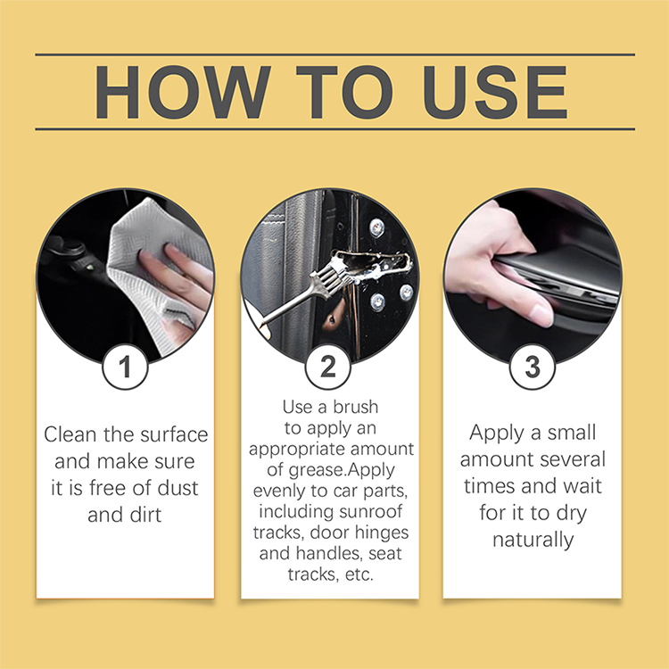 ENSURE EASY APPLICATION - The grease is packaged with a convenient applicator that simplifies usage. Its smooth texture allows for even application on various car parts, including sunroof tracks and door hinges, saving time and effort during maintenance routines.