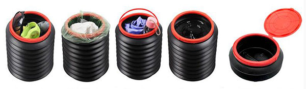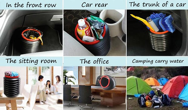Foldable bin, can be stretched as required, portable storage. High quality plastic, thick and sturdy. Half folded, the opening of the barrel can be stretched at any angle. with sufficient materials, fold and stretch up to ten thousand times.