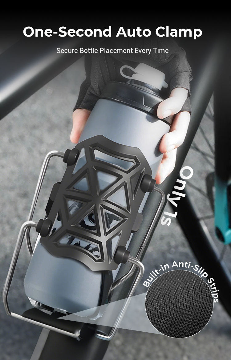 AUTOMATIC CLAMPING MECHANISM: Screw fastening ensures quick, tool-less mounting to standard bicycle frames. Even on rough surfaces, the auto-tightening system holds the bottle securely in place, reducing vibration and preventing accidental dislodgement during high-speed riding.