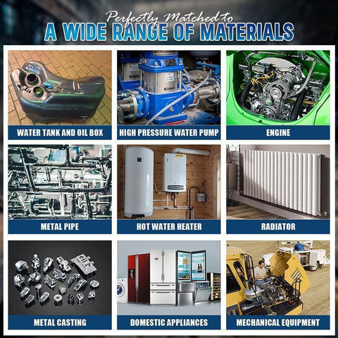 This product is resistant to high and low temperatures and is suitable for repairing any metal surface, steel, pumps, water tanks, oil tanks, engines, appliances, machines, etc. It is also adaptable to a variety of objective environments.