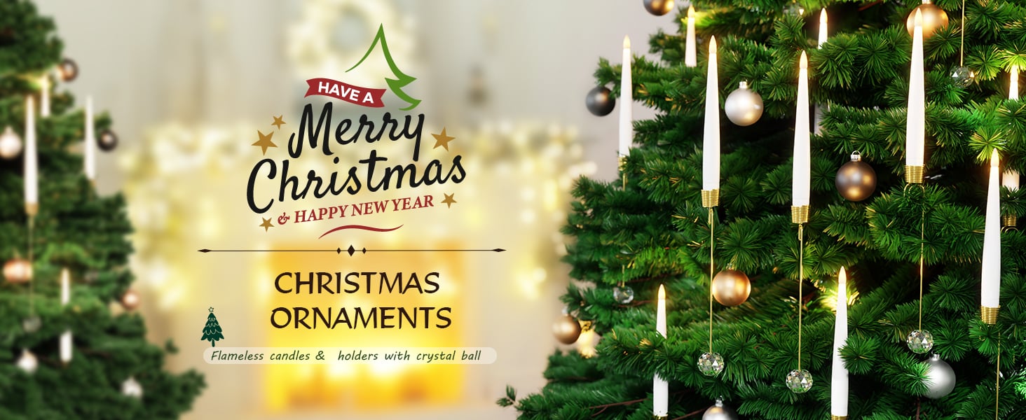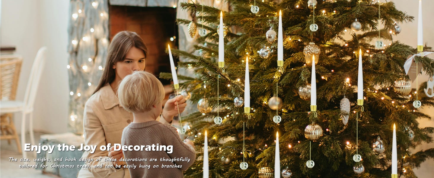 🎁WHAT YOU GET: 6 Pcs LED Candles/12 Pcs LED Candles powered by 1 AAA battery, 6/12-pack of 7" clear crystal ball hooks, one 10-key remote control, and one user manual. Use these unique Christmas tree decorations to make your Christmas tree stand out among the rest and turn your home into the envy of your neighbors!