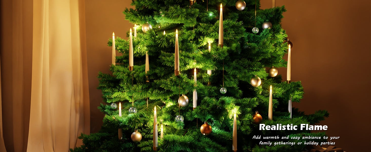 🔥WONDERFUL CHRISTMAS TREE DECORATIONS:The flameless taper candles are made of plastic with frosted and polished surfaces to simulate the texture of real wax. These flickering taper candles feature realistic 3D wicks that perfectly simulate real flames, emitting a naturally flickering warm glow. The soft glow shines through the crystal ball, casting charming lighting effect that brings Christmas tree to life and add a unique warmth and cozy atmosphere.