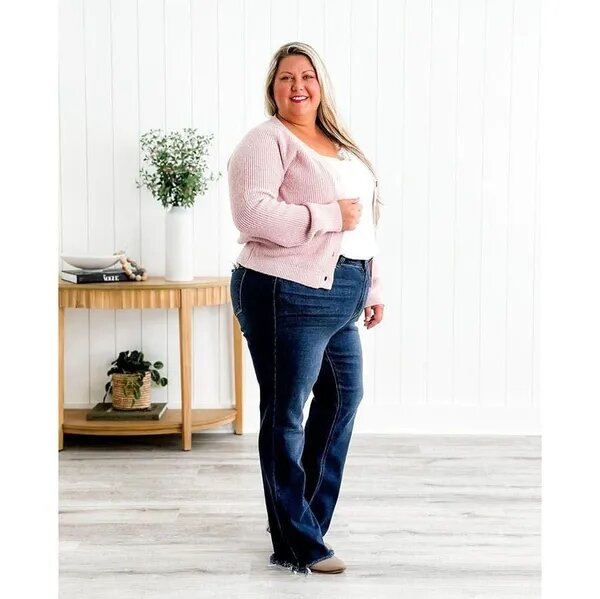 The best part about bootcut is it's flattering on ALL body styles! It gives a straight and narrow gal the appearance of an hourglass and it gives curvy gals a balanced figure. If you don't own bootcut - grab these and give them a try! You will be blown away by how flattering they fit!