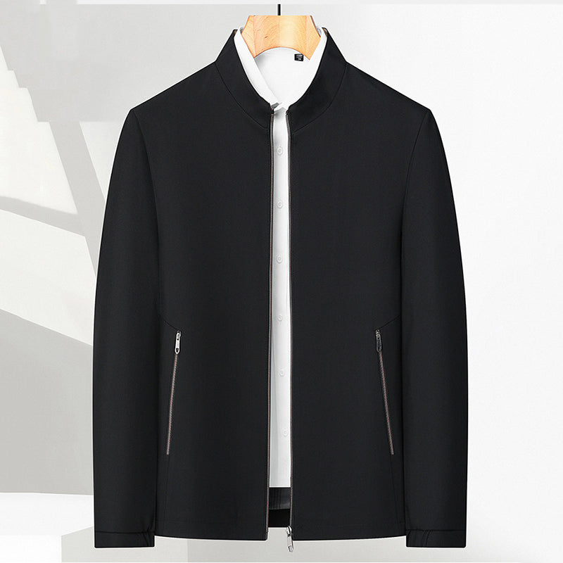 Crafted with lightweight and wrinkle-resistant fabric, this jacket offers a breathable and skin-friendly wearing experience. The standing collar and sleek design make it suitable for various occasions, showcasing elegance and sophistication. Whether you're wearing it yourself or gifting it to your father, it is a stylish and comfortable choice.