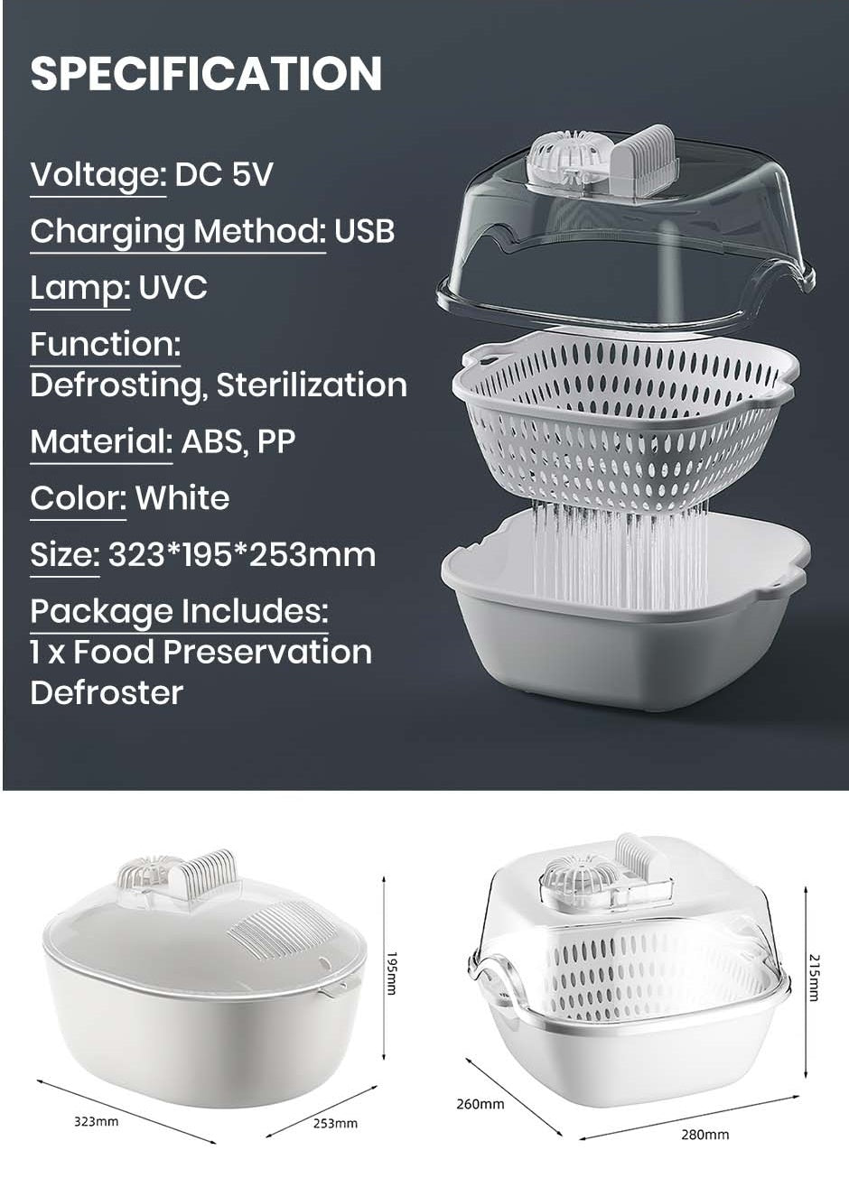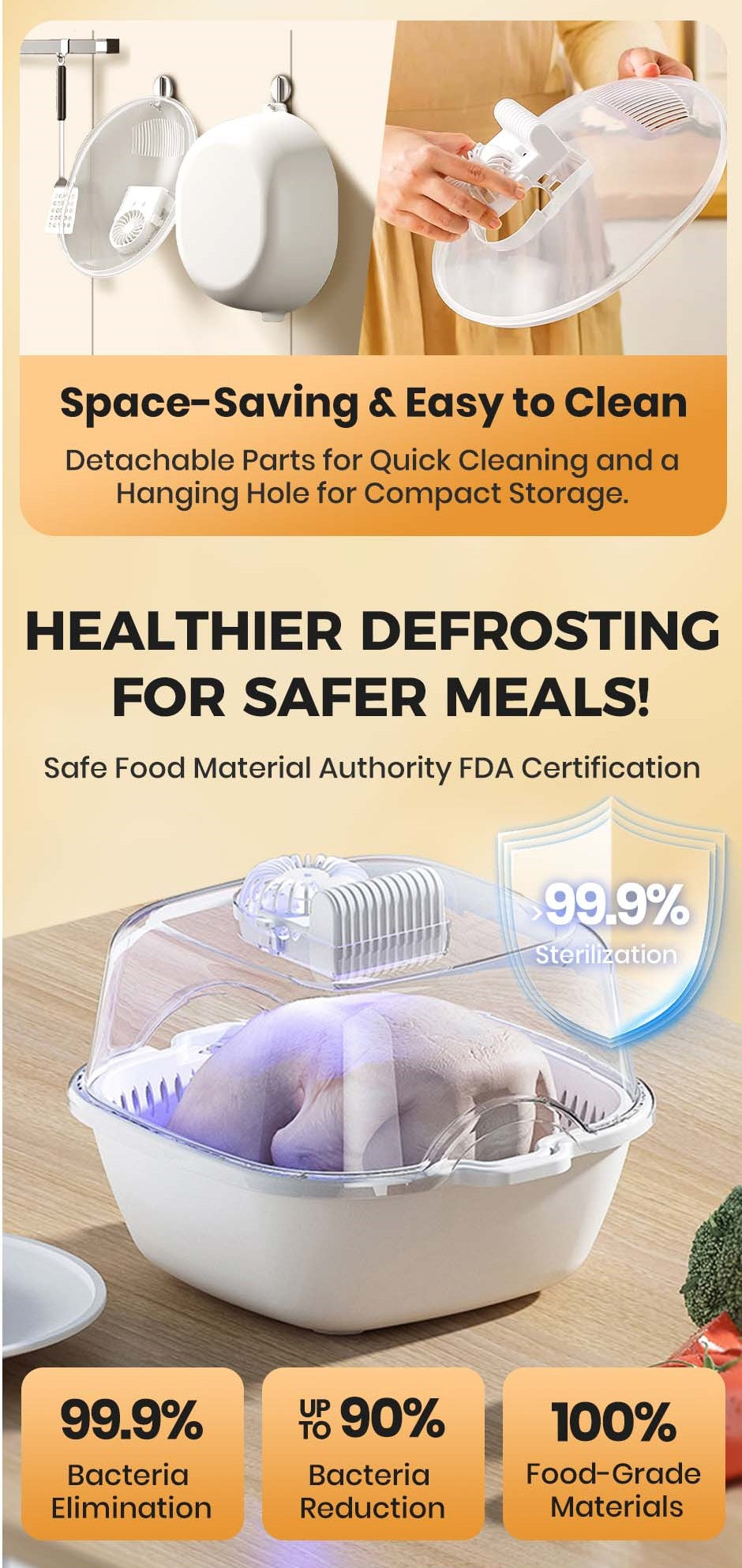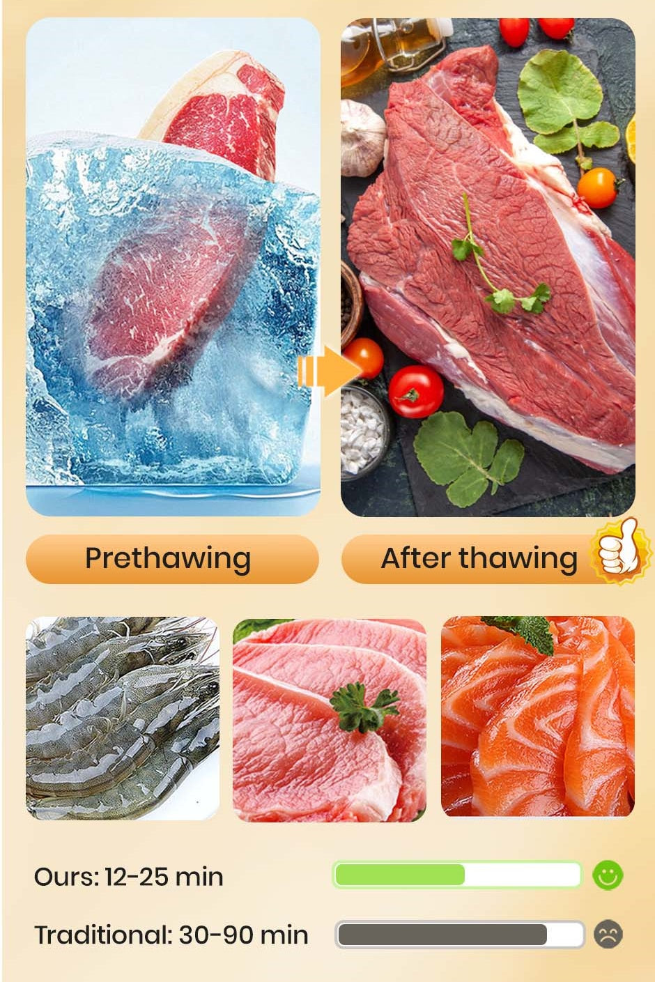 Get this Meat Preservation Defroster to save your time, effort, and food. Fast thawing for about 20 minutes, with UV bacteriostasis function to keep your meat fresh and healthy.