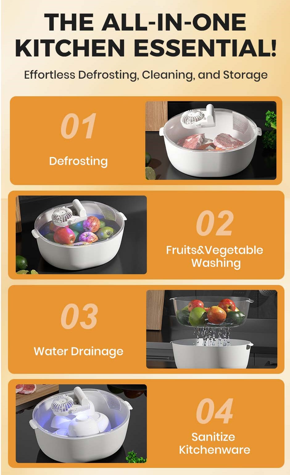 * Multi-functions: Featuring a draining design, it is not only suitable for the quick defrosting of frozen food but also for the cleaning of fruits and vegetables. It is also a sterilized container for dishes and kitchen utensils.