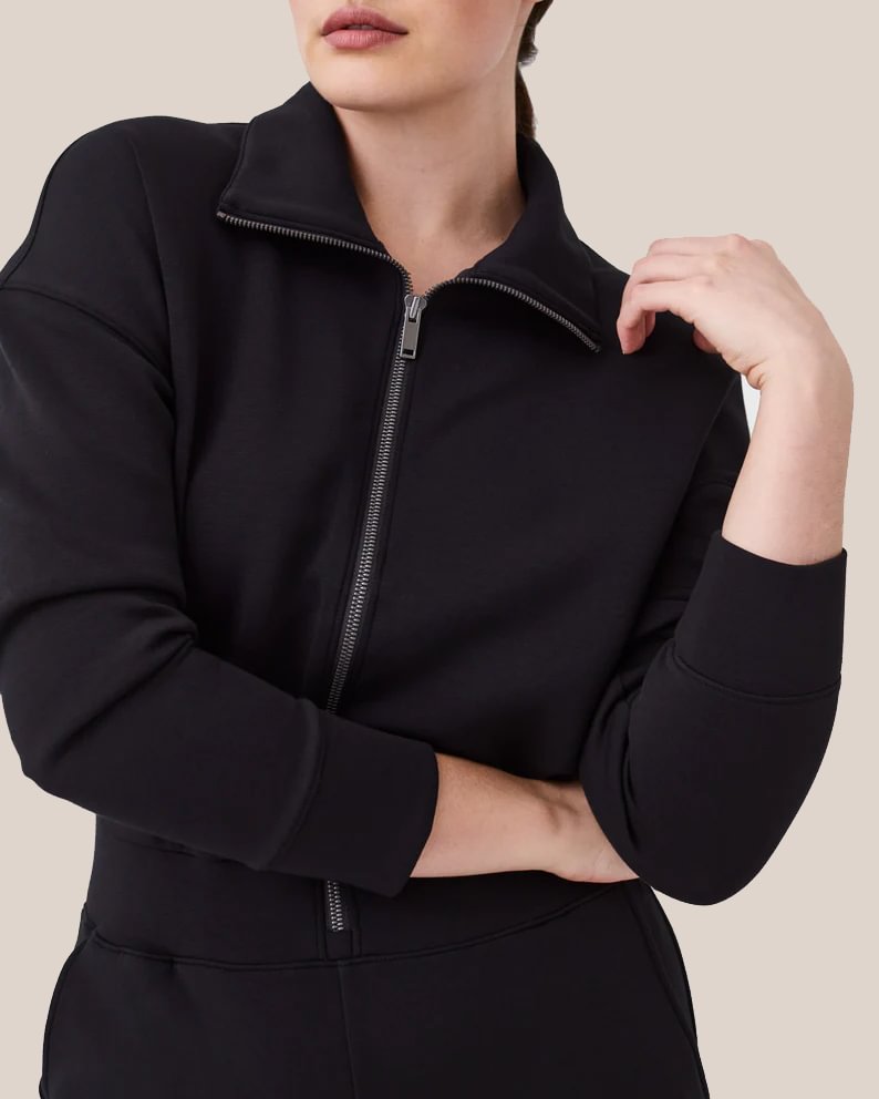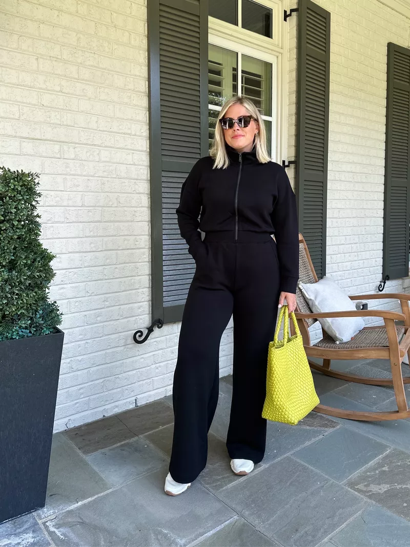 To make dressing up a breeze, we've added a convenient front zipper. It not only adds a touch of sophistication but also makes it effortless to slip in and out of the jumpsuit.Functional pocket!