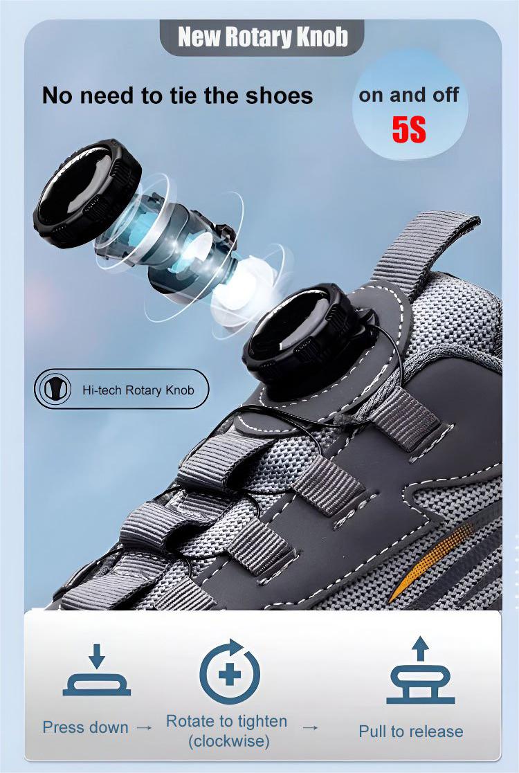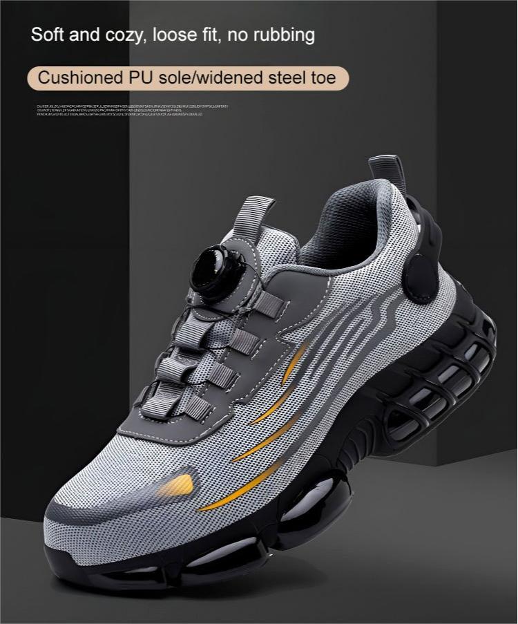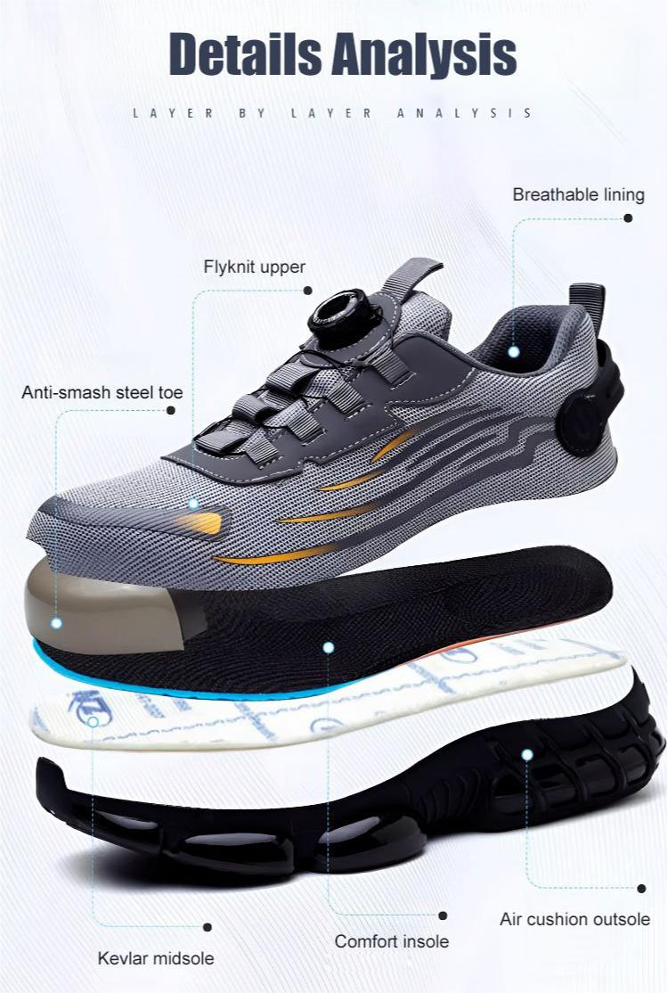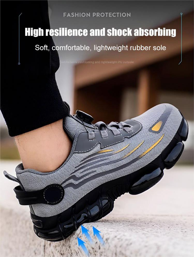 KNOB DESIGN: OUR SHOES ARE EQUIPPED WITH A UNIQUE KNOB DESIGN FOR EXTRA PROTECTION AND DURABILITY. Our shoes are equipped with a unique knob design for extra protection and durability. This innovative feature improves the overall safety of the shoes and ensures that your feet remain safe in high-risk environments. This impact- and puncture-resistant design ensures that your feet are safe and protected, even in the most demanding working conditions. The impact and puncture-resistant design ensures that your feet are safe and protected, even in the most demanding working conditions.