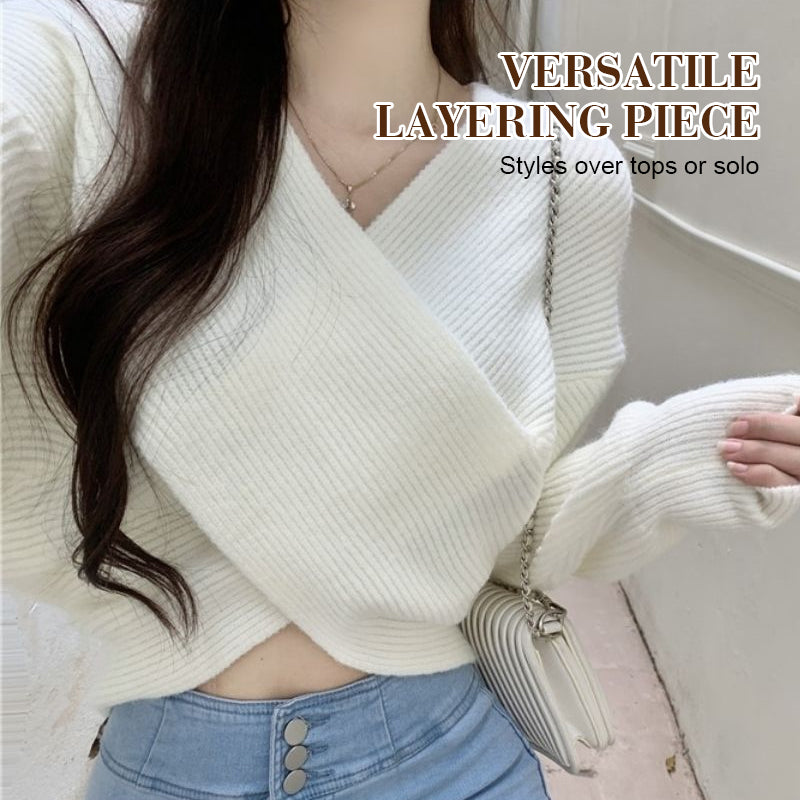 PACKAGE INCLUDES: 1 * Chic V-Neck Long Sleeve Wrap Front Sweater