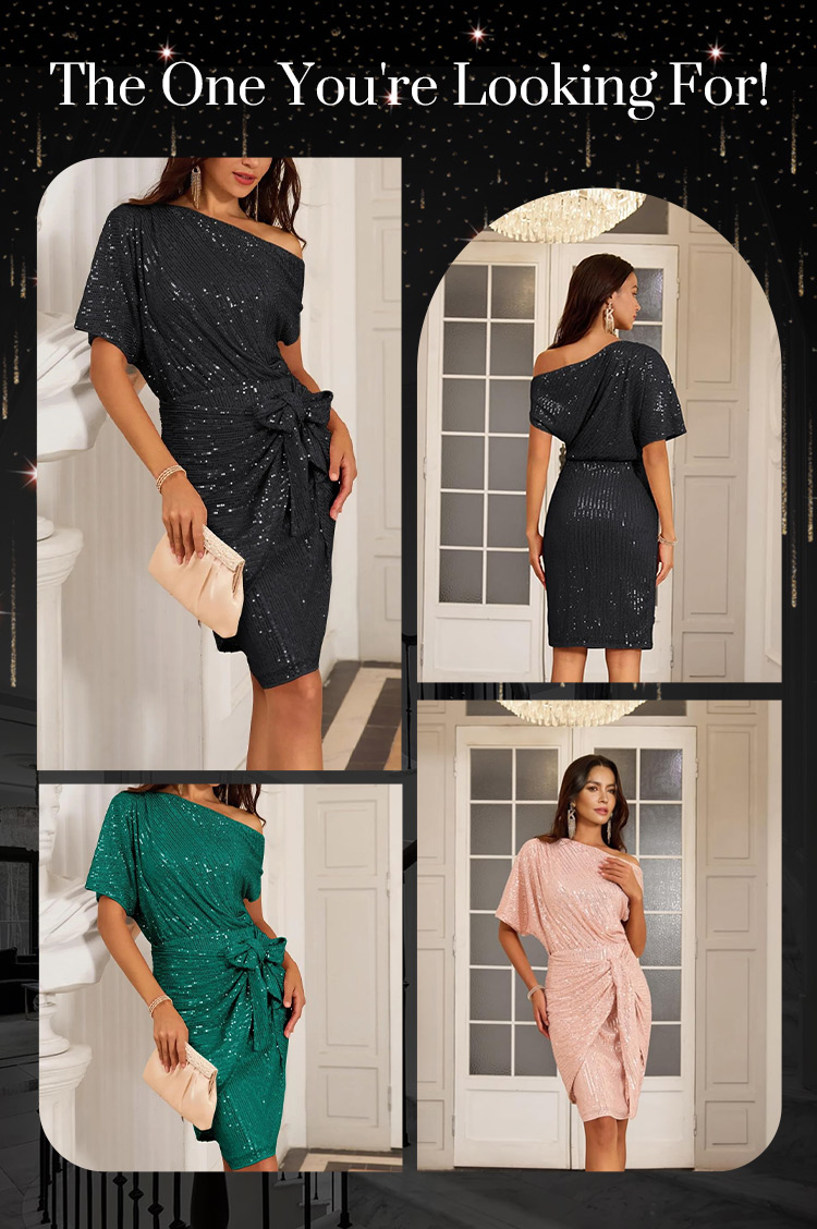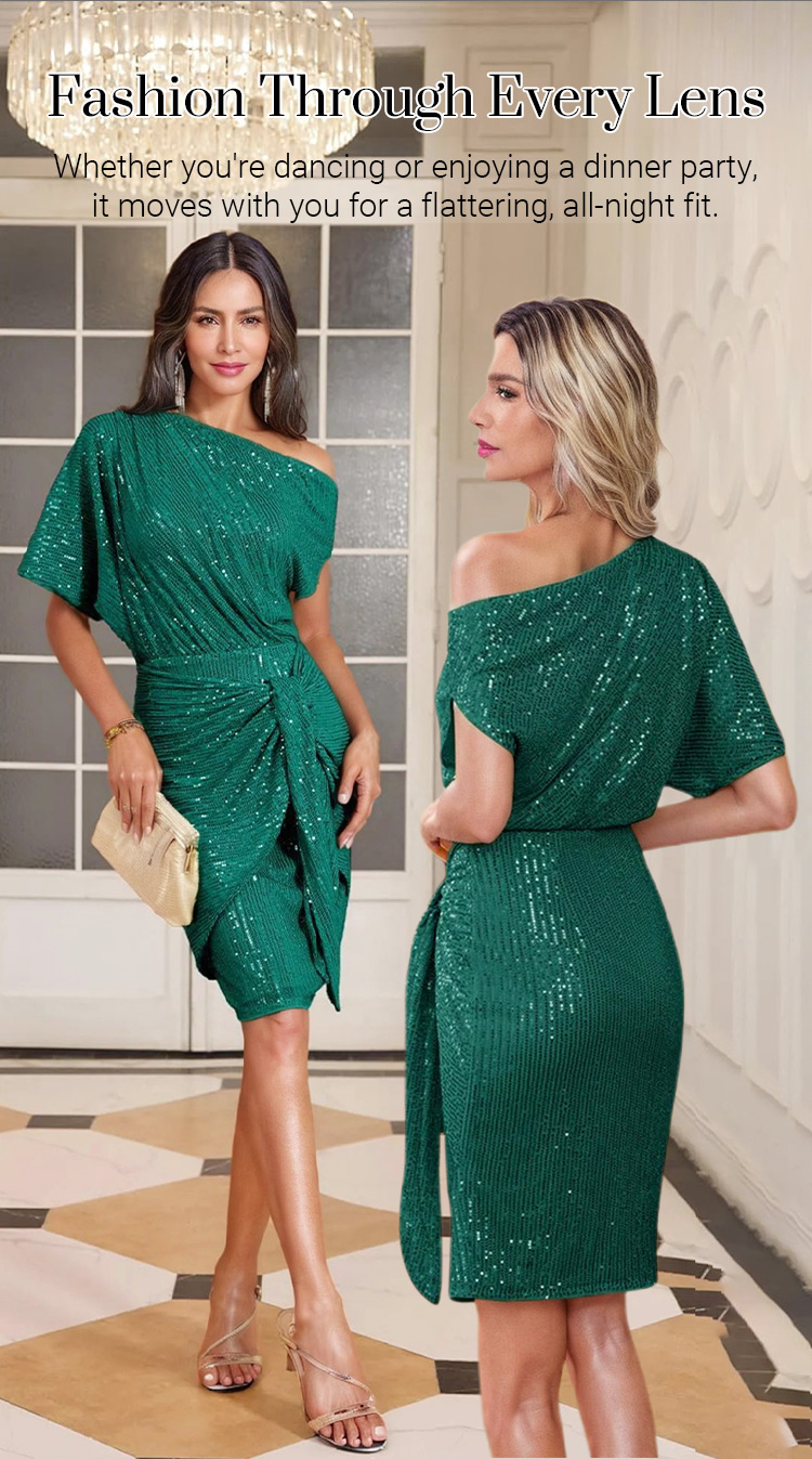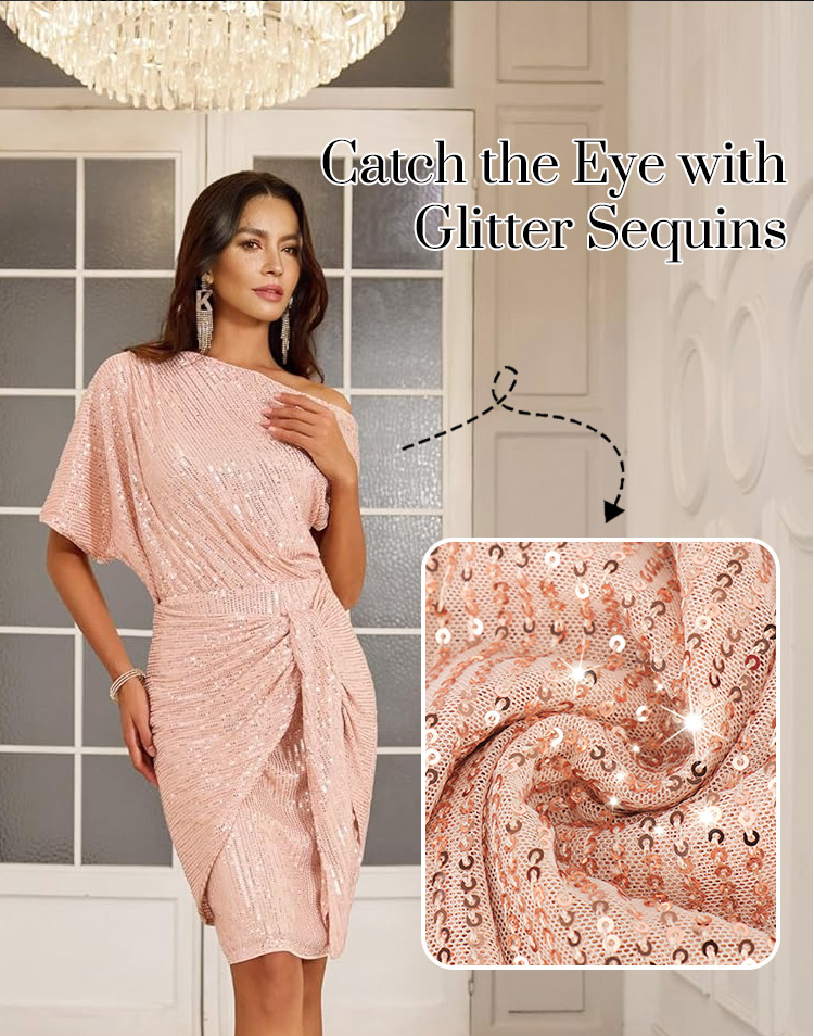 • ✨ 50% OFF NOW! 💜 Women's One Shoulder Sequin Dress - Sparkling Glamour with Bodycon Fit for Party & Club Nights 🌟🪩