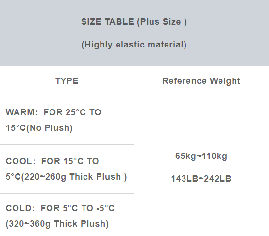 💞The COOL: 220G~260G and COLD:320G~360G versions have plush inner layer which is soft, comfortable and keeps you warm in cold seasons without being bulky. Let you feel the soft fluff that feels like baby skin.It is able to keep you warm even at -5 deg C (23 deg F)..