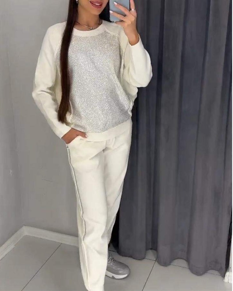 Package Includes: 1 * Women's Glitter Rhinestone Sweatshirt & Casual Pants 2 Piece Set
