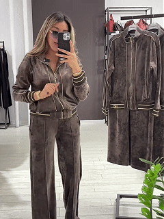 Achieve effortless elegance with this matching zip-up jacket and wide-leg pants set. Perfectly balanced in design, it delivers a ready-to-wear outfit that transitions seamlessly from lounging to casual outings.