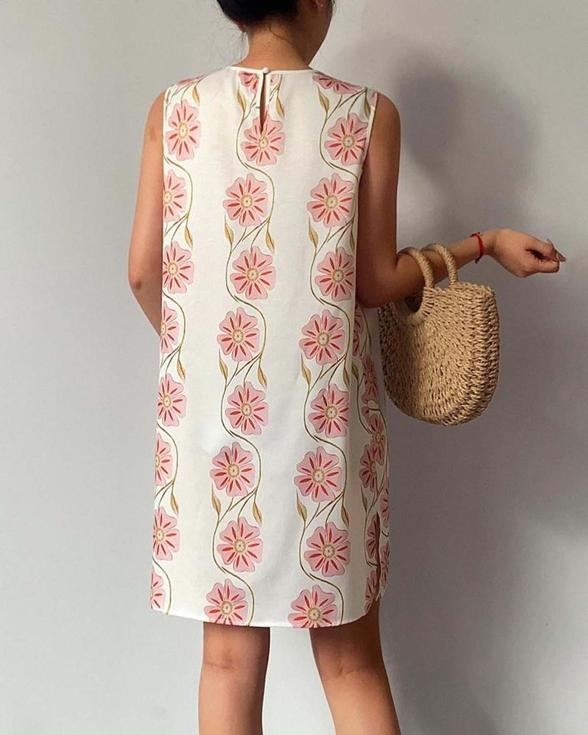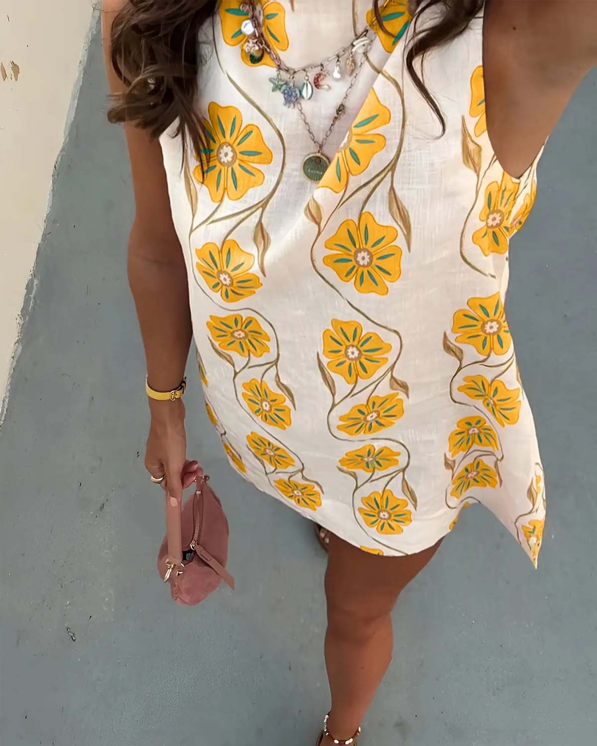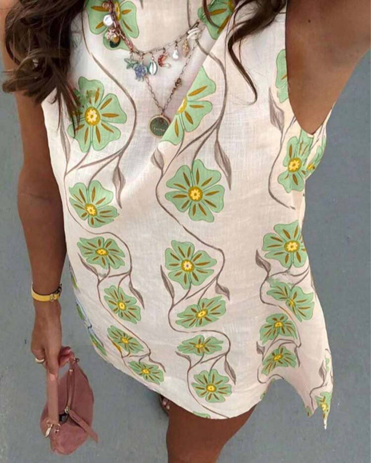 Elevate your summer wardrobe with this daring Women's Casual Sleeveless Floral Print Dress. Designed to turn heads, its vibrant floral pattern and breezy sleeveless cut offer both comfort and bold style.