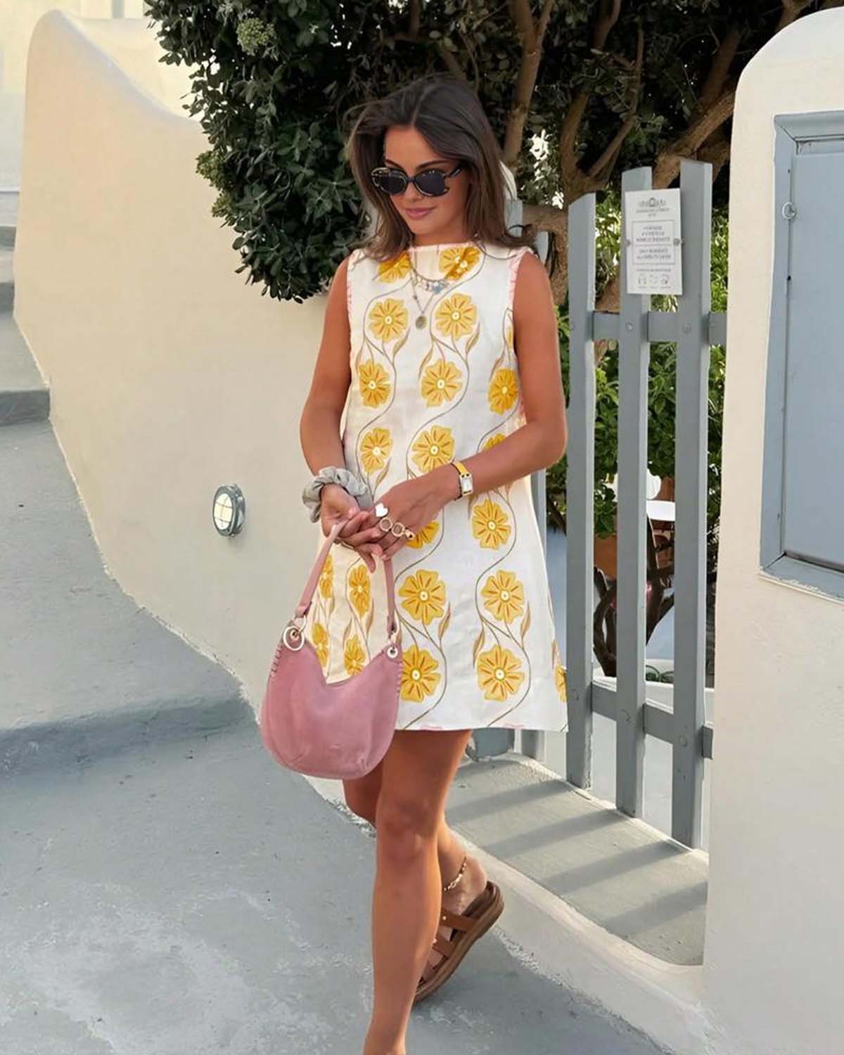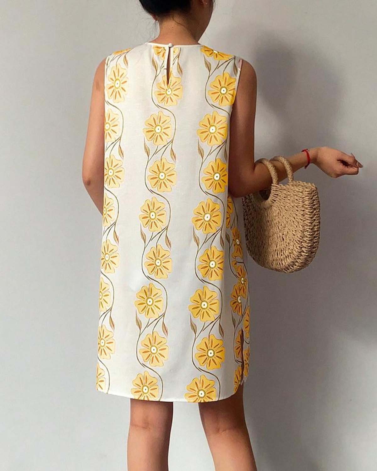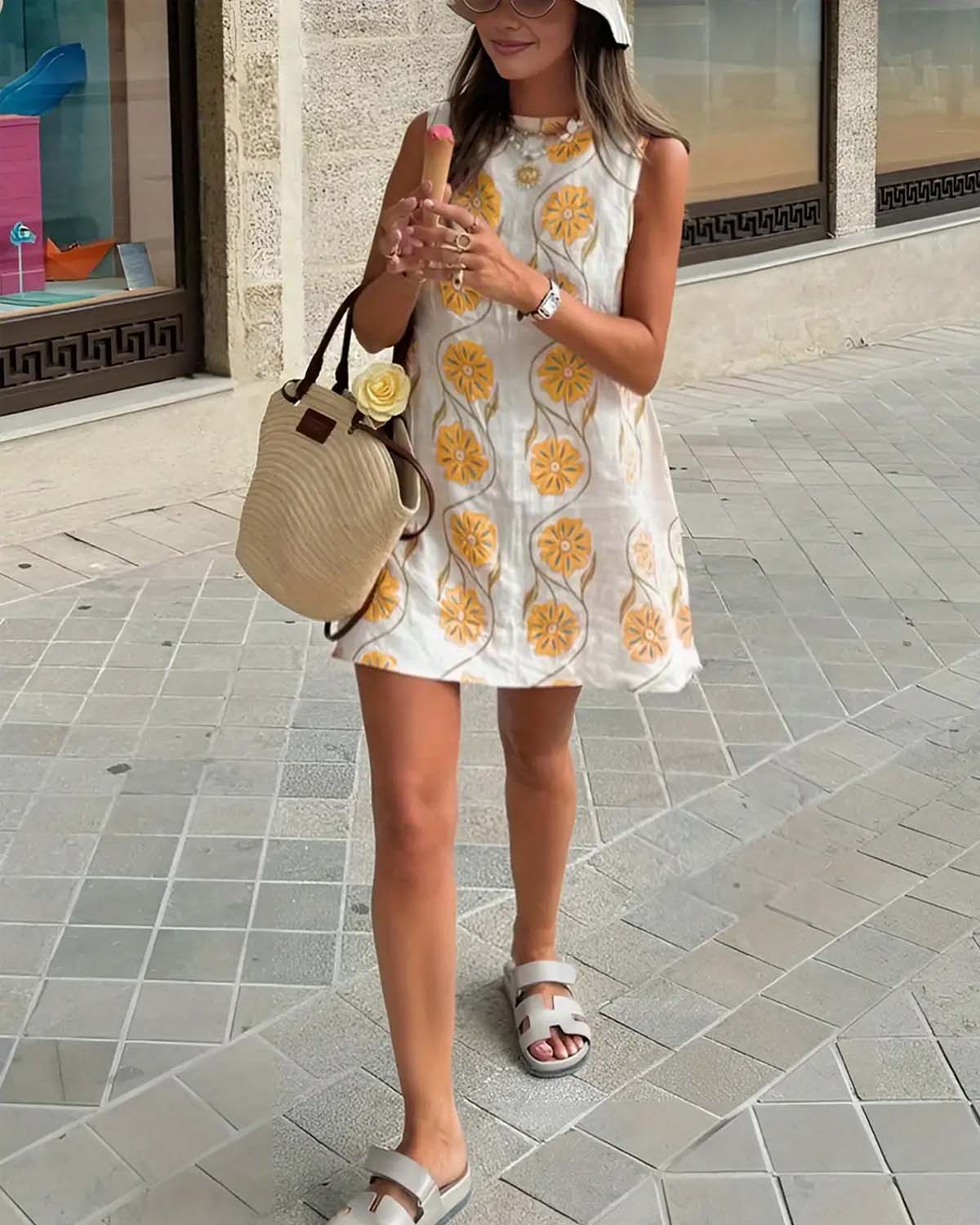 Elevate your summer wardrobe with this daring Women's Casual Sleeveless Floral Print Dress. Designed to turn heads, its vibrant floral pattern and breezy sleeveless cut offer both comfort and bold style.