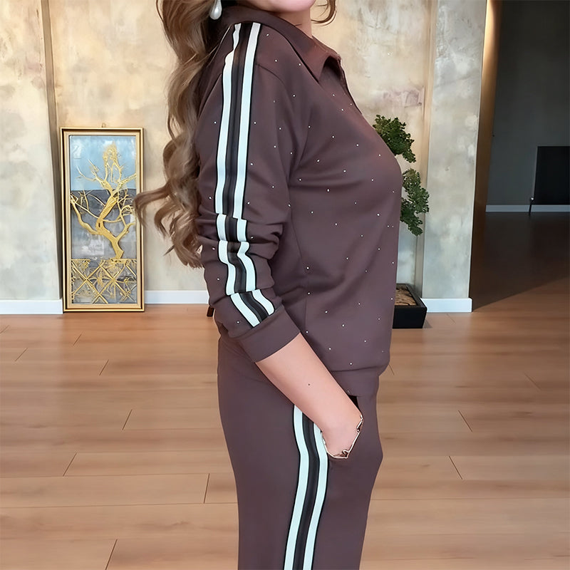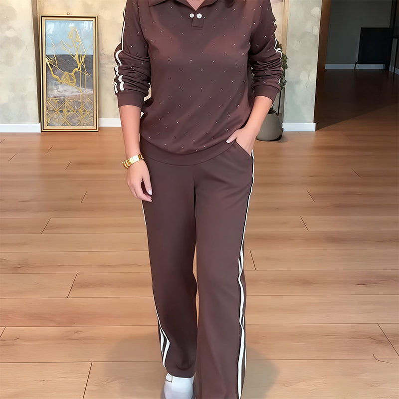 1 x Rhinestone Collared Sporty Casual Set