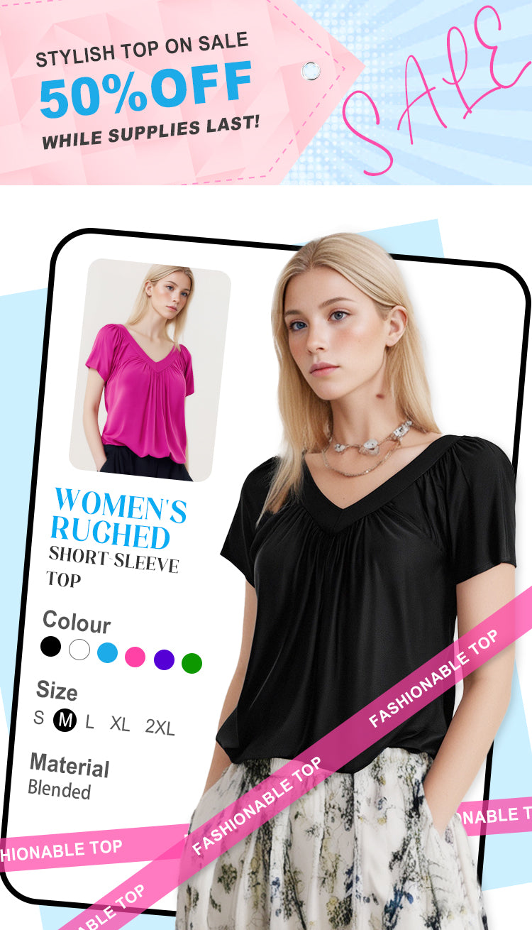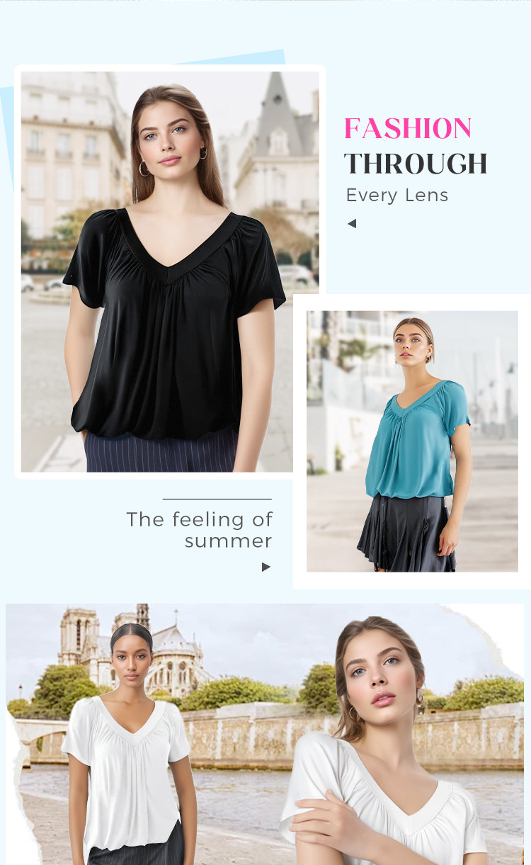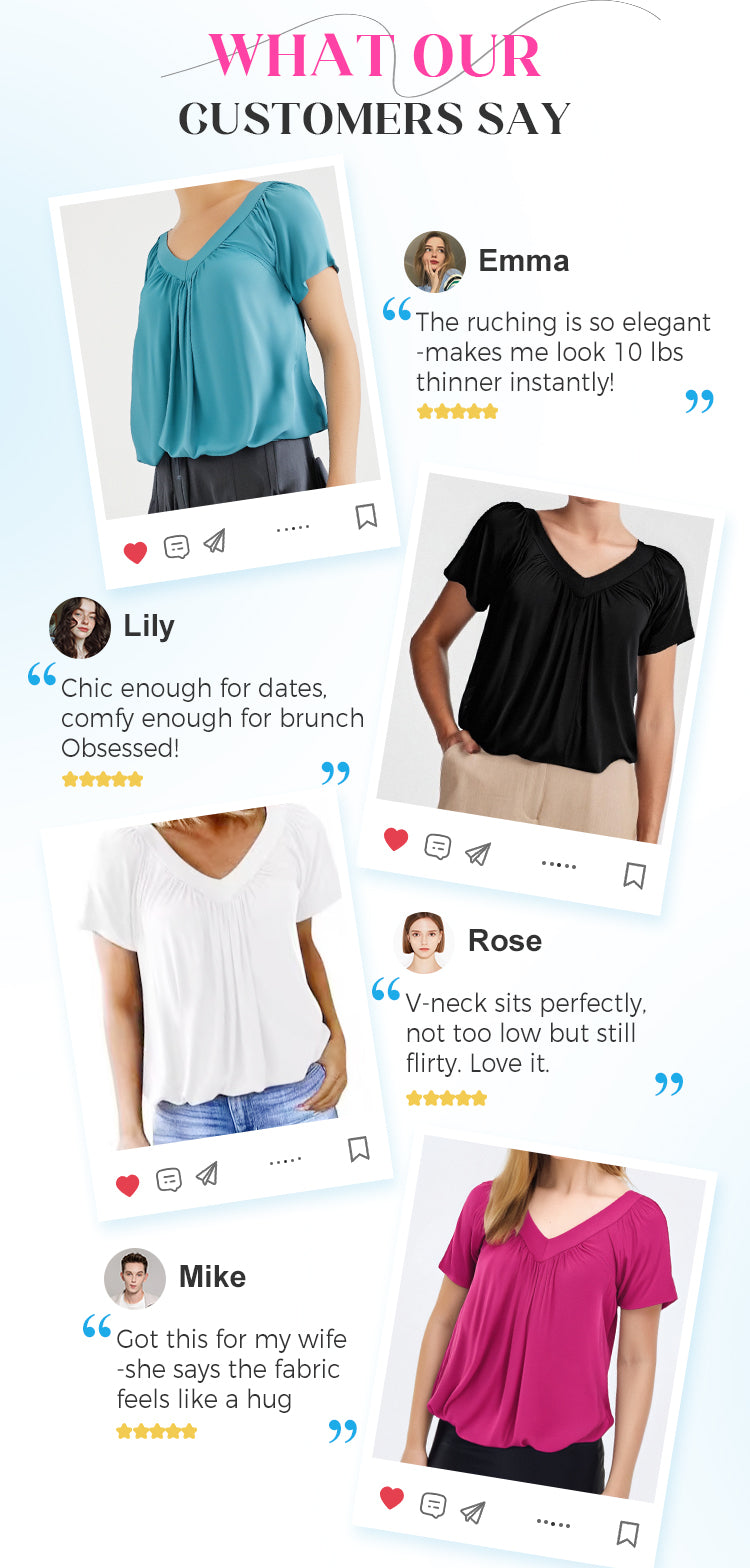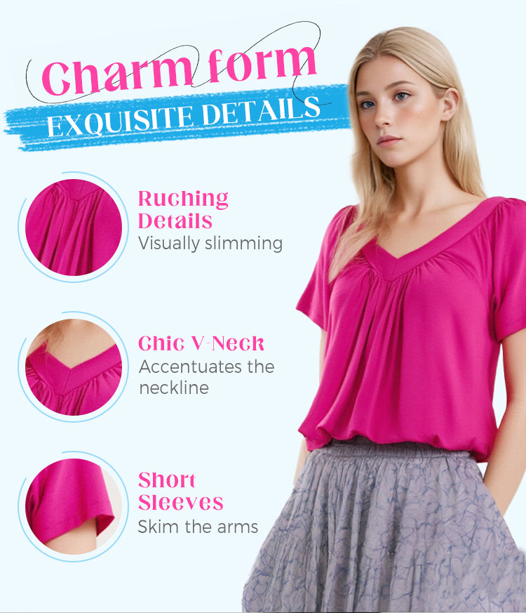 🎁Summer Hot Sale 50% OFF⏳Women's Casual Pleated V-Neck Short-Sleeve Top