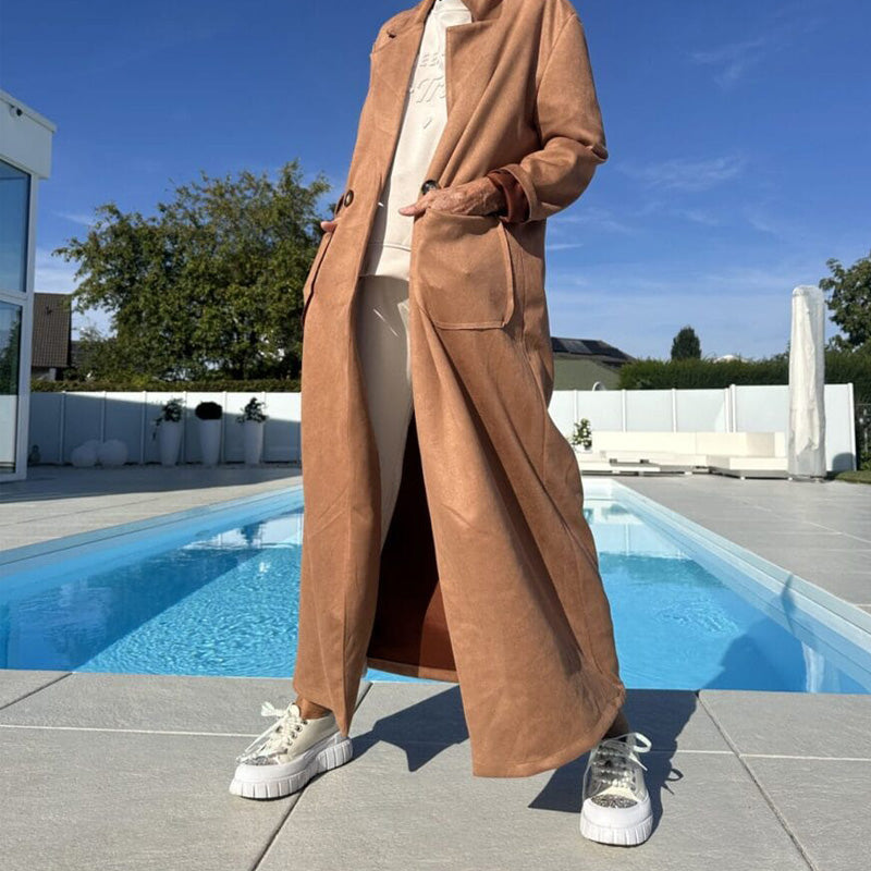 COMFORTABLE FABRIC: Made from high-quality faux suede, this coat feels luxuriously soft against the skin. The breathable material ensures comfort throughout the day, allowing for easy movement without feeling restricted. Experience the perfect blend of style and comfort with every wear.