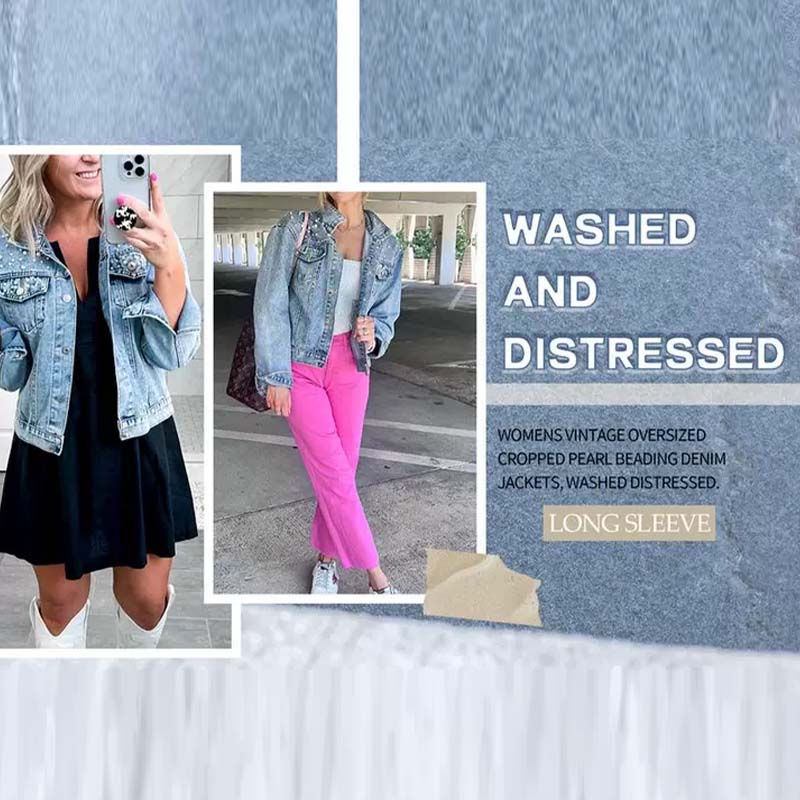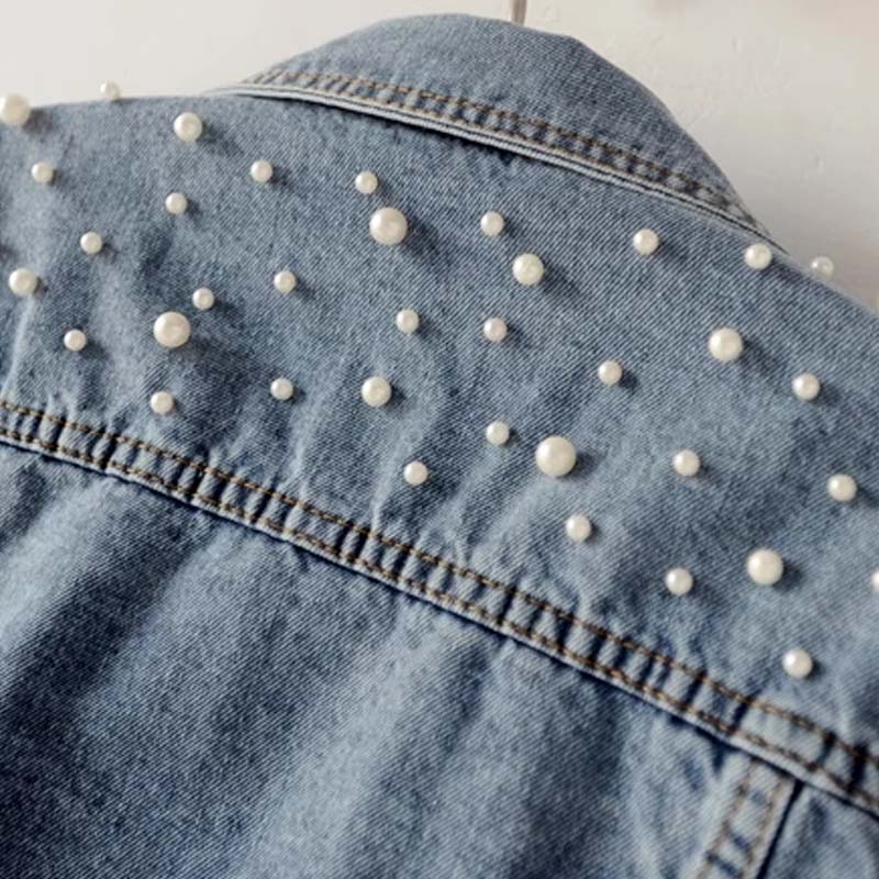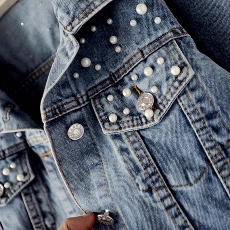 A PLAYFUL TWIST – Who says denim can’t sparkle? Sweet synthetic pearl accents at the collar and pockets turn everyday casual into something delightfully chic. It’s a touch of elegance that makes your outfit instantly stand out.