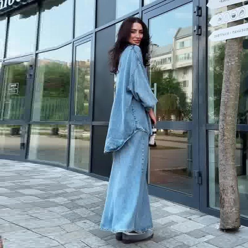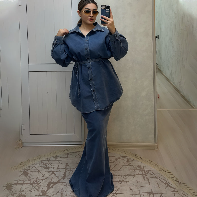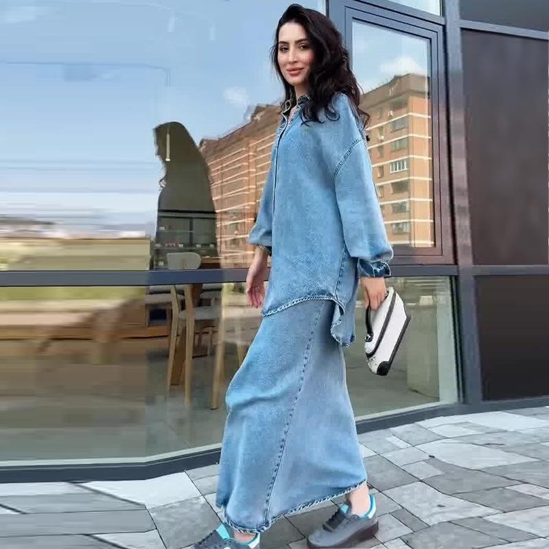 CURATED ELEGANCE: This set pairs a chic loose shirt with a flowing maxi skirt for a complete denim outfit. It removes the stress of matching separates, delivering an instantly polished and modern look with minimal effort required for your daily style.
