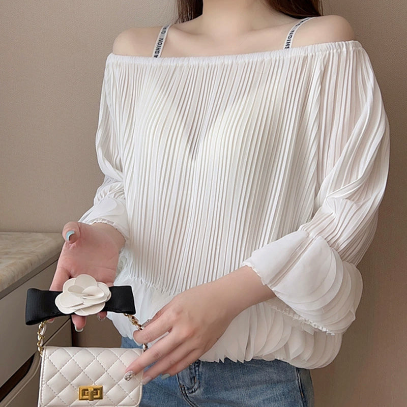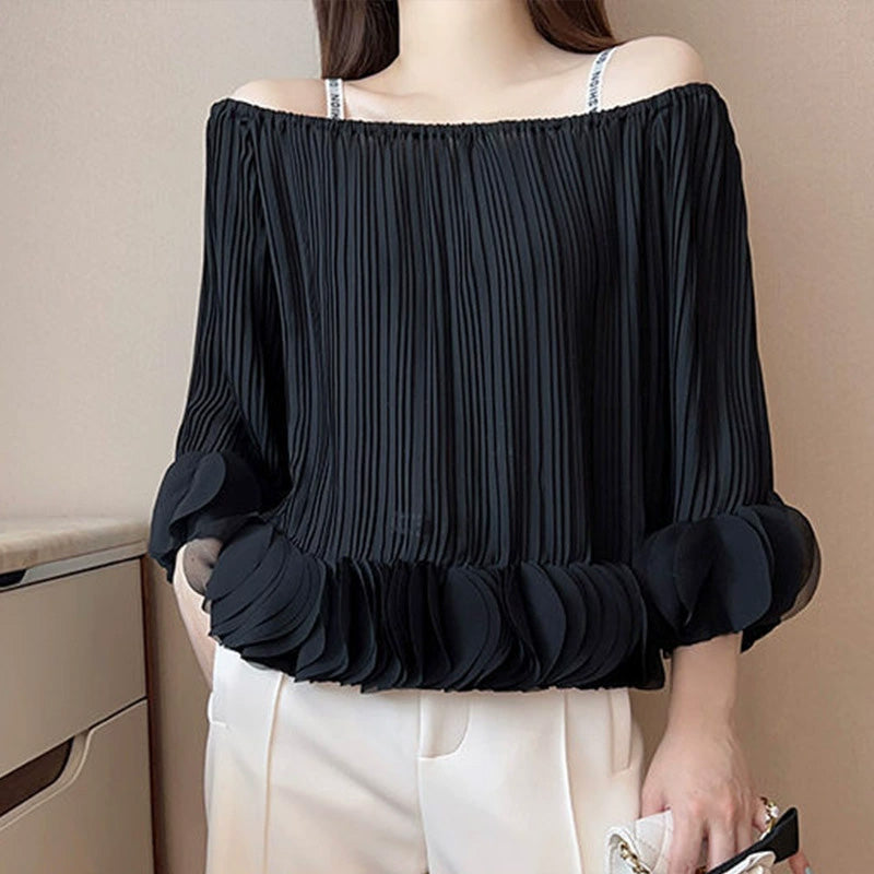 Package Include: 1* Women's Flowy Pleated Off-The-Shoulder Top