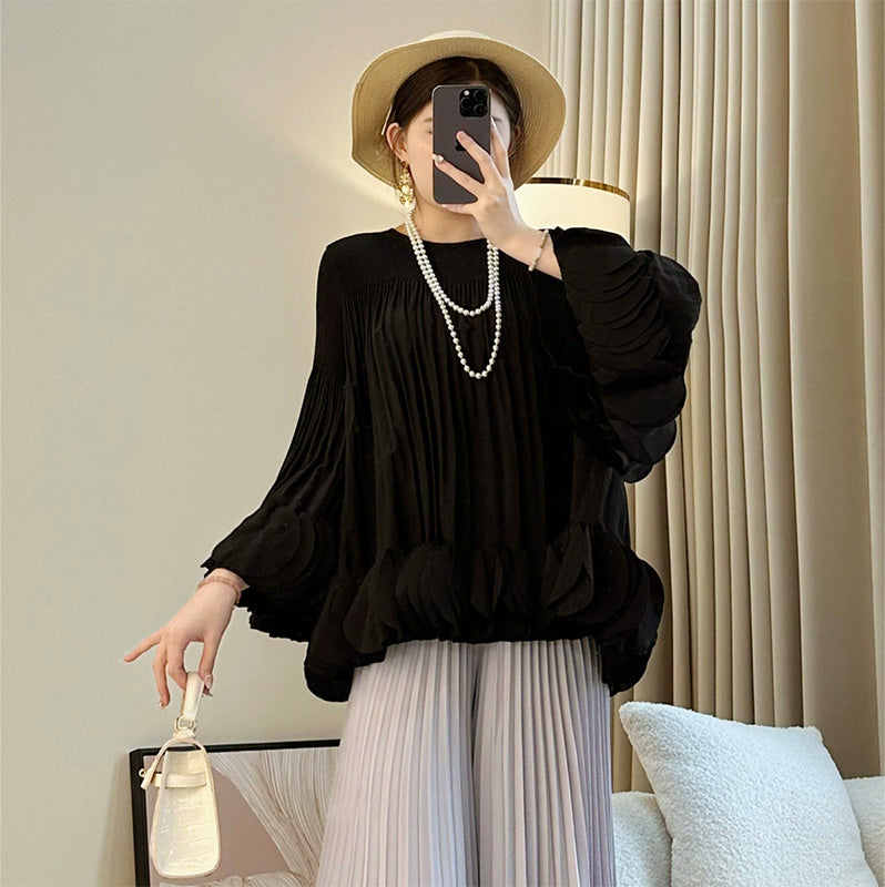 PLEATED DETAILING FOR A TOUCH OF CLASS: The pleated design adds texture and sophistication, giving the blouse a refined, graceful appearance that enhances your overall style and makes you stand out.