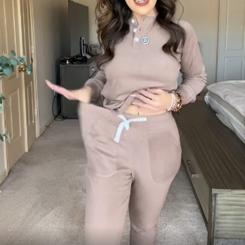 VERTICAL SIDE POCKETS – Large side pockets offer convenient storage for essentials like keys, phones, or wallets. Integrated seamlessly into the design, they maintain a sleek look while adding practicality. Ideal for errands, casual outings, or home wear, the pockets enhance the set’s utility without compromising style.