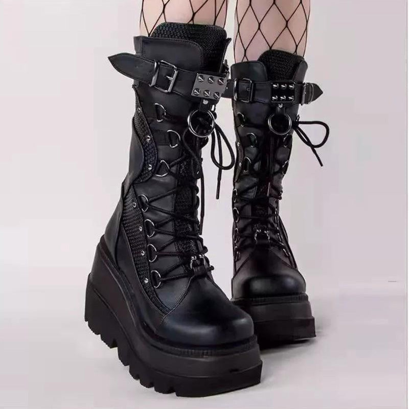 PUNK-INSPIRED STYLE – Featuring bold lines and edgy detailing, these mid-calf boots embrace a rebellious aesthetic that enhances both casual and statement outfits.