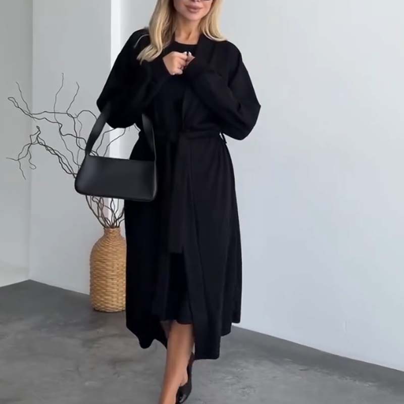 ADJUSTABLE TIE-BELT DESIGN – The longline layer includes a matching tie-belt, enabling an adaptable fit and the option to define your waistline. This feature allows for cinching the outer piece for a polished silhouette or wearing it flowing for a relaxed style. The flexible tie-belt enhances garment versatility.
