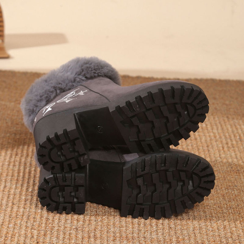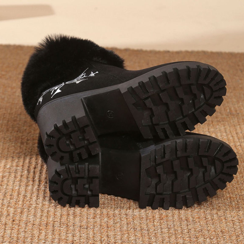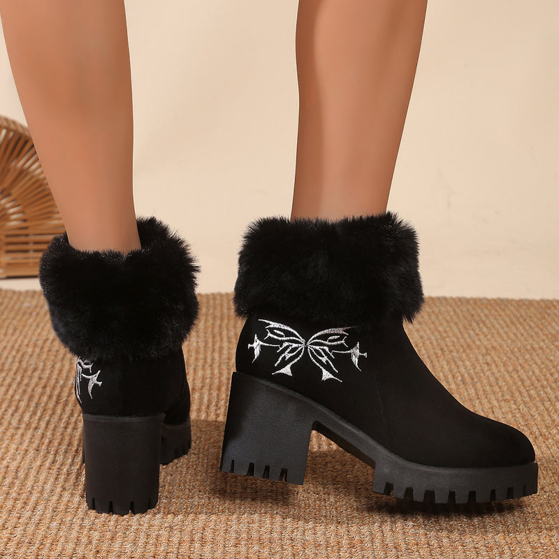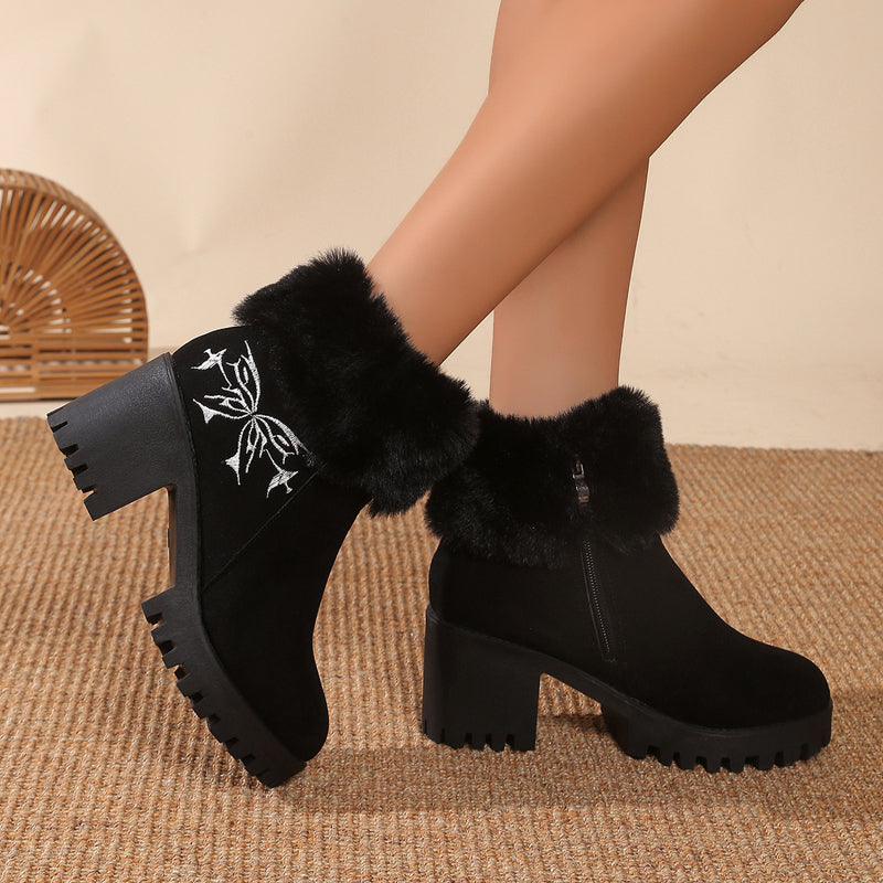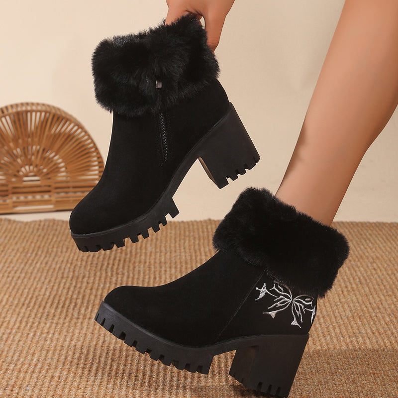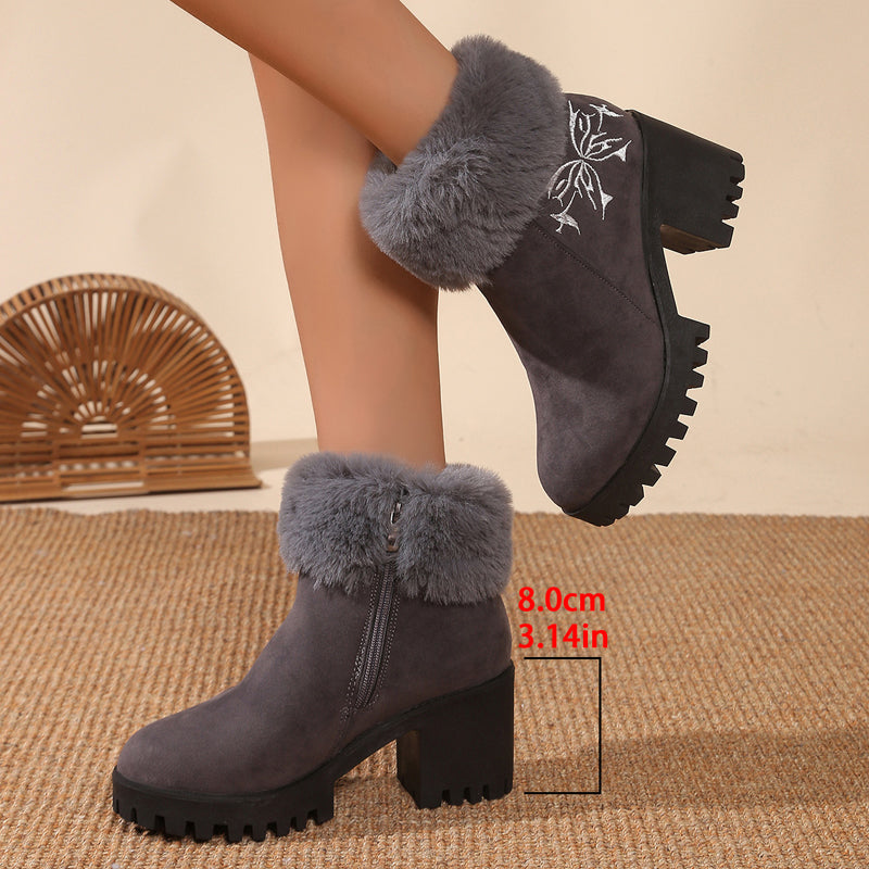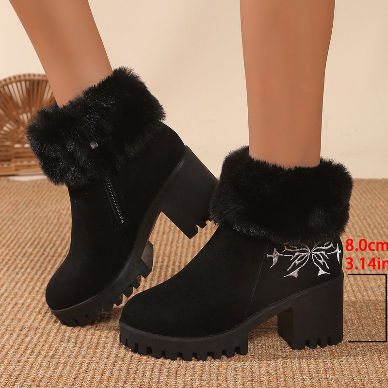 Package Includes: 1 Pair×Women's Warm Chunky High Heel Ankle Boots