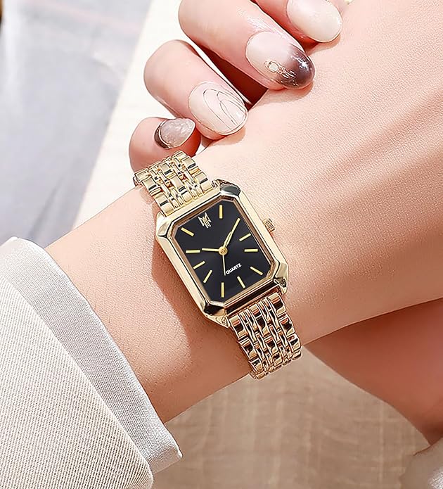 Square quartz watch: Unique and stylish square case, metal strap, alloy case. The delicate dial and sparkling decoration make the watch very elegant and can show your elegance and charming temperament. It is not only a practical tool but also a perfect accessory.