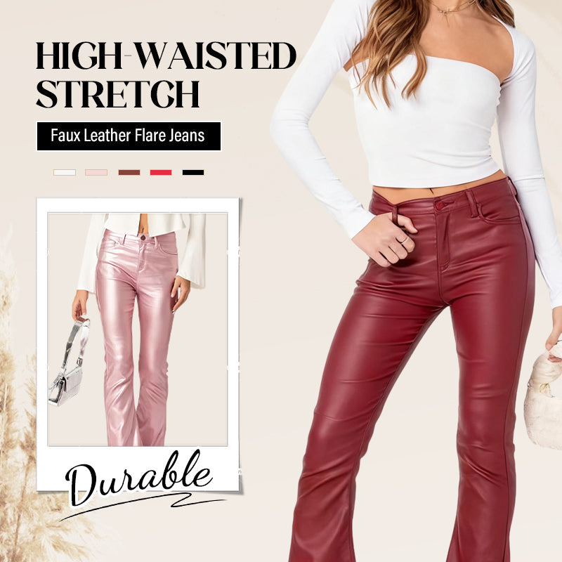 🔥Limited-time offer-High-Waisted Stretch Faux Leather Flare Jeans