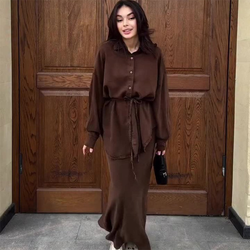 🔥Limited-time offer-Women's Fashion Loose Shirt and Maxi Skirt 2-Piece Set