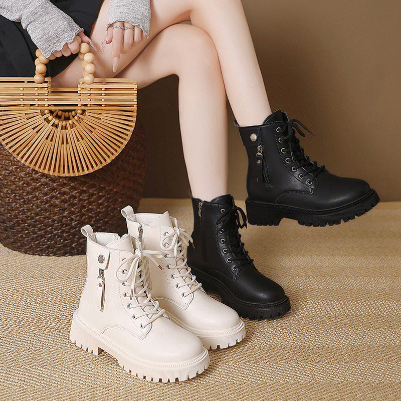 Women’s Lace-Up Low-Heel Round Toe Ankle Boots