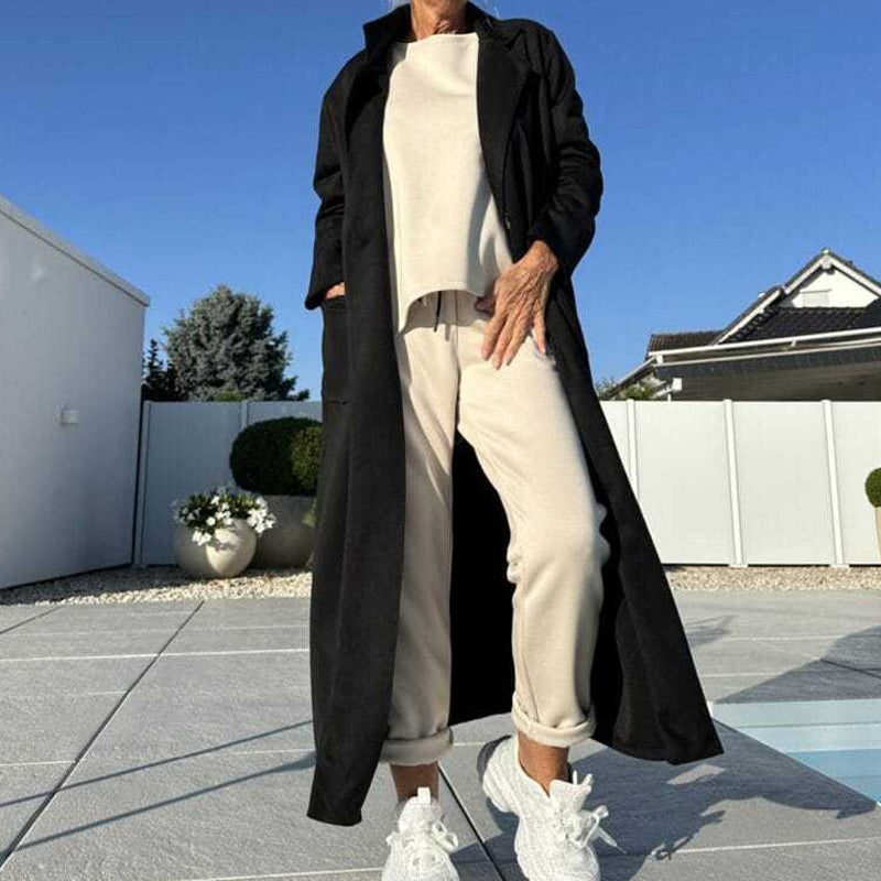 Elegant Black Double-Breasted Coat: Comfortable Fit & Timeless Style