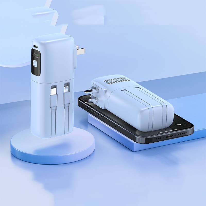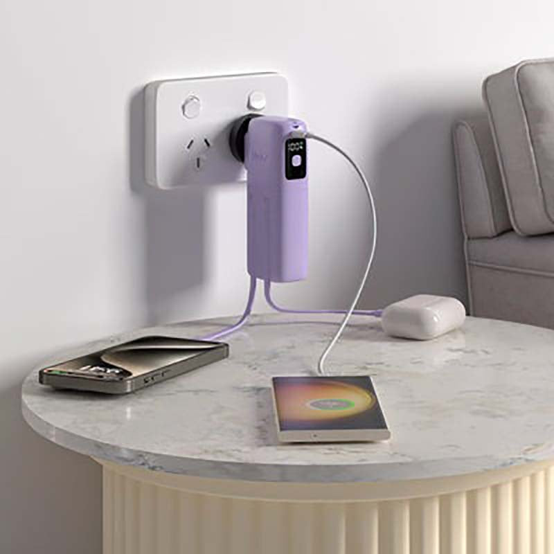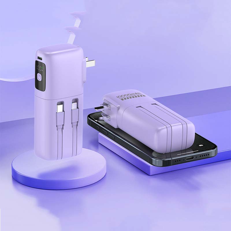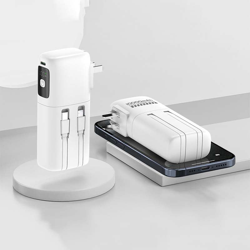 BUILT-IN AC FOLDABLE PLUG: The power bank includes a convenient foldable AC plug, allowing you to charge it directly from a wall outlet without needing extra cables. Ideal for hassle-free recharging anywhere.
