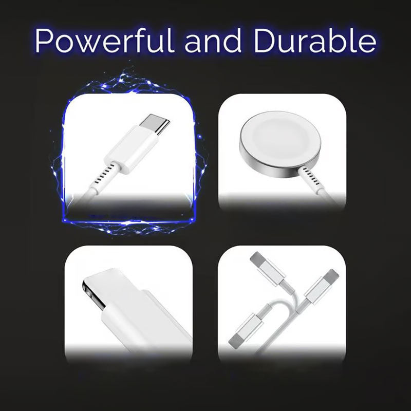VERSATILE 3-IN-1 DESIGN - This cable combines USB-C, Lightning, and Apple Watch magnetic charging capabilities into one convenient accessory. Charge multiple devices at the same time without clutter.