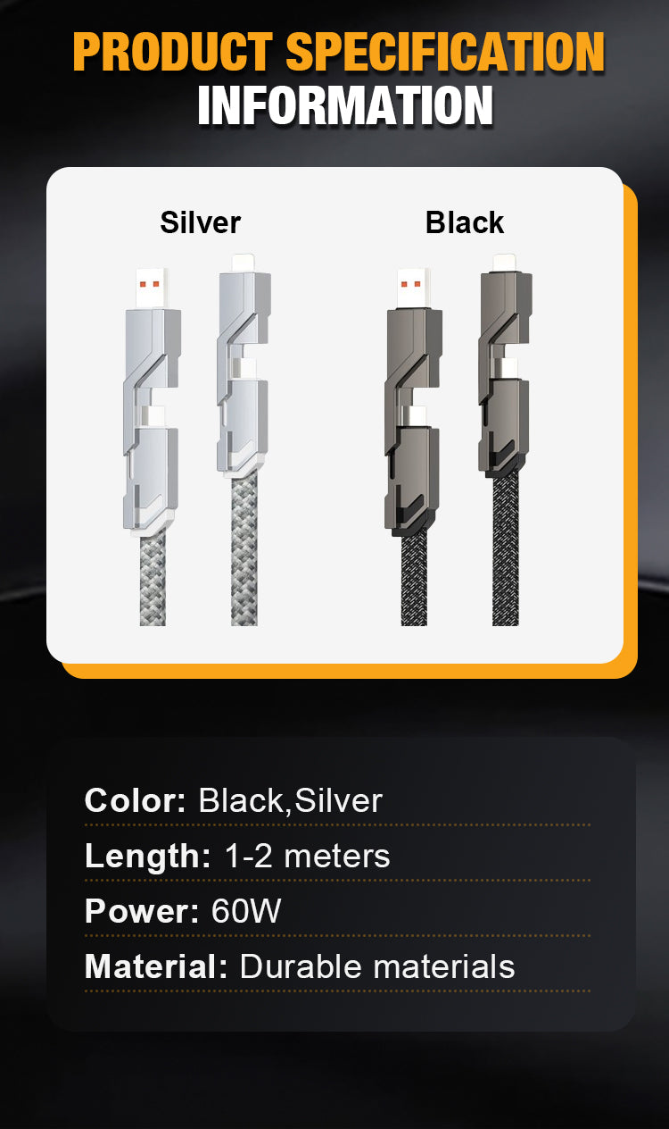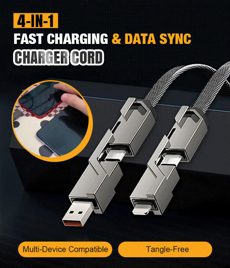 4-in-1 Fast Charging & Data Sync Charger Cord