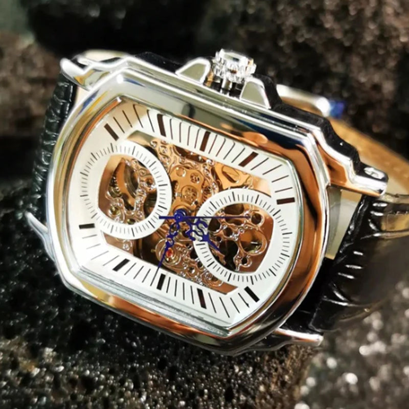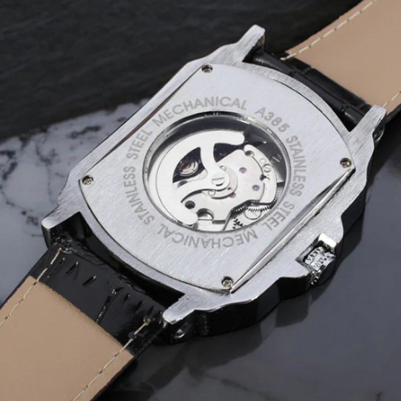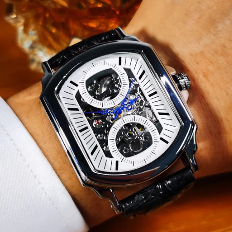 MODERN STYLISH DESIGN: The unique irregular skeleton dial adds a contemporary aesthetic to this automatic watch. Available in classic black and white, it stands out as a true fashion statement.