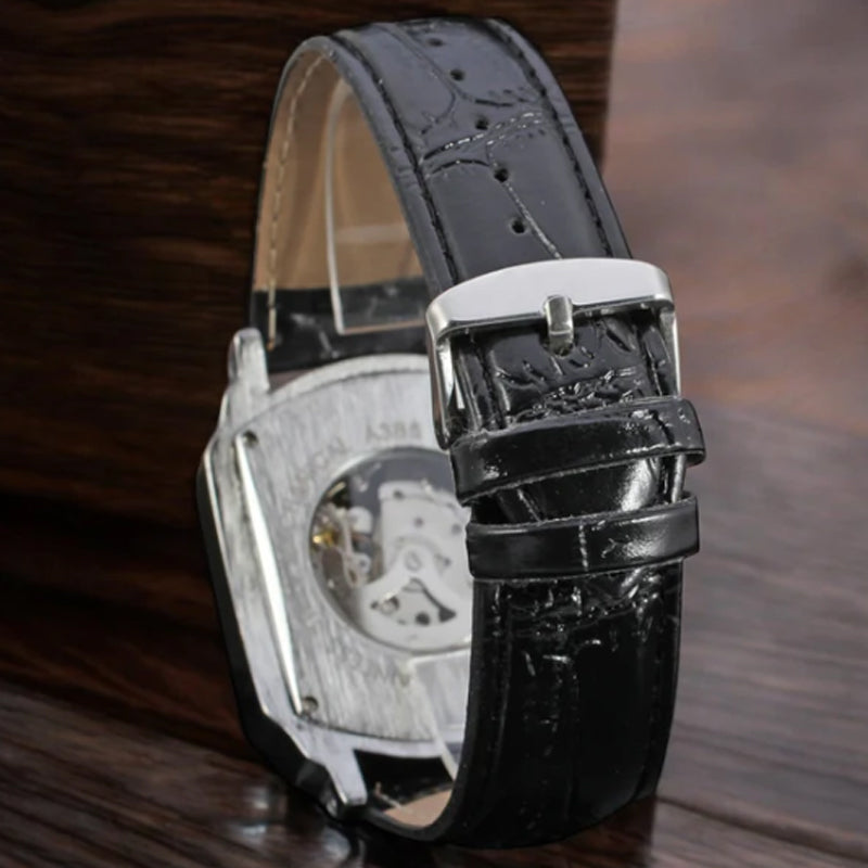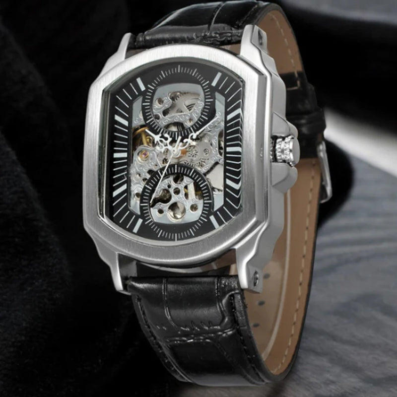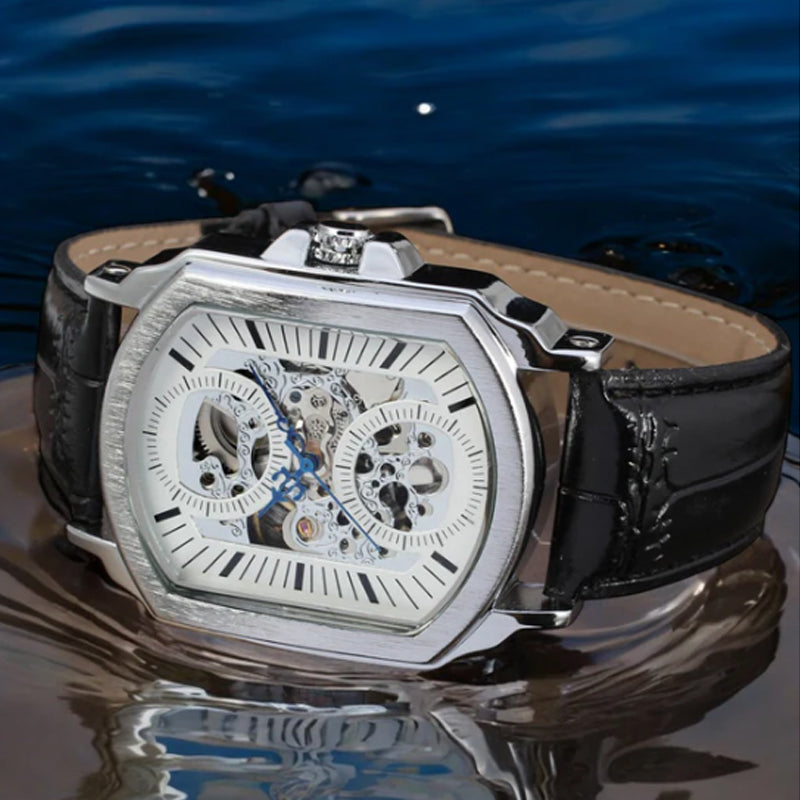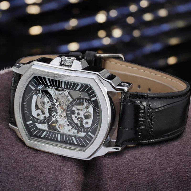 PRECISION MECHANICAL TIMING: This watch features a stunning skeleton design, showcasing its intricate mechanical movement. The striped time markers are clear and easy to read for effortless timekeeping.
