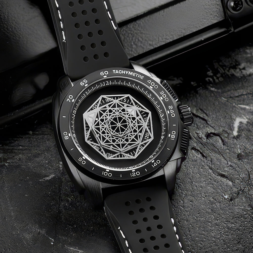 GEOMETRIC ARTISTRY IN DESIGN: A stunning geometric pattern adorns the dial, adding a modern and artistic touch. This intricate design ensures your watch stands out as a statement piece for any occasion.