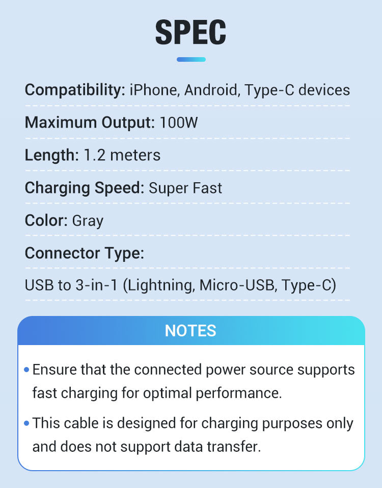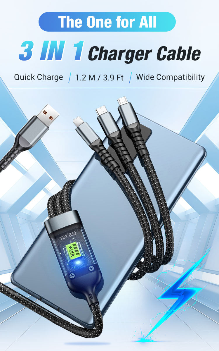 Transparent Luminous 3-in-1 Super Fast Charging Cable