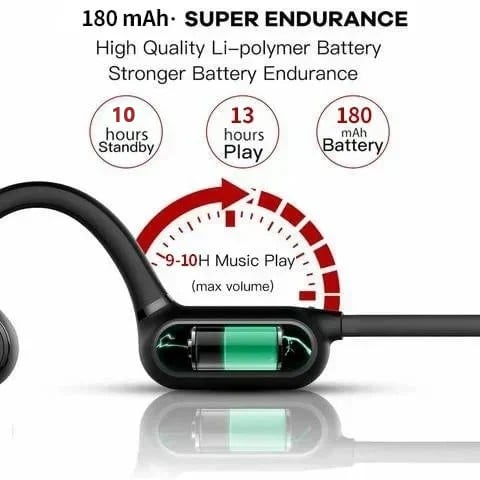 Bone Conduction Technology: Now enjoy hours of music without damaging your earbuds. It features bone conduction technology that creates vibrations to transmit sound through the bones of your face (jawbones and cheekbones) directly to the inner ear. The wrap-around-design makes it extremely lightweight, flexible and provides custom and secure fit.