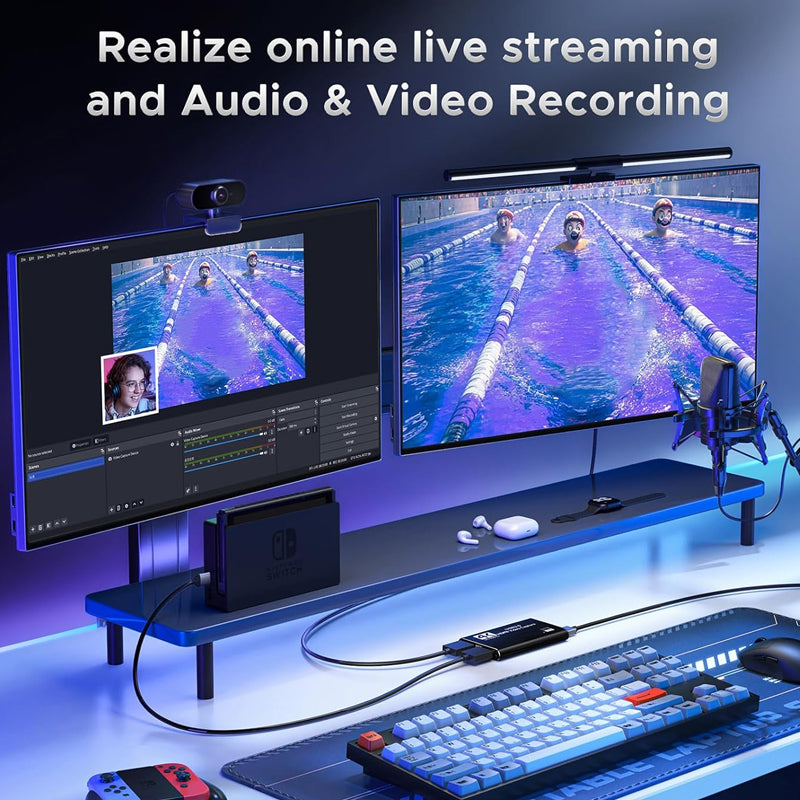 BUILT-IN AUDIO INPUT & OUTPUT – Equipped with a microphone input and headphone output, this device allows you to add real-time commentary while recording or streaming. The 48KHz PCM audio sampling rate ensures crisp and clear sound quality.
