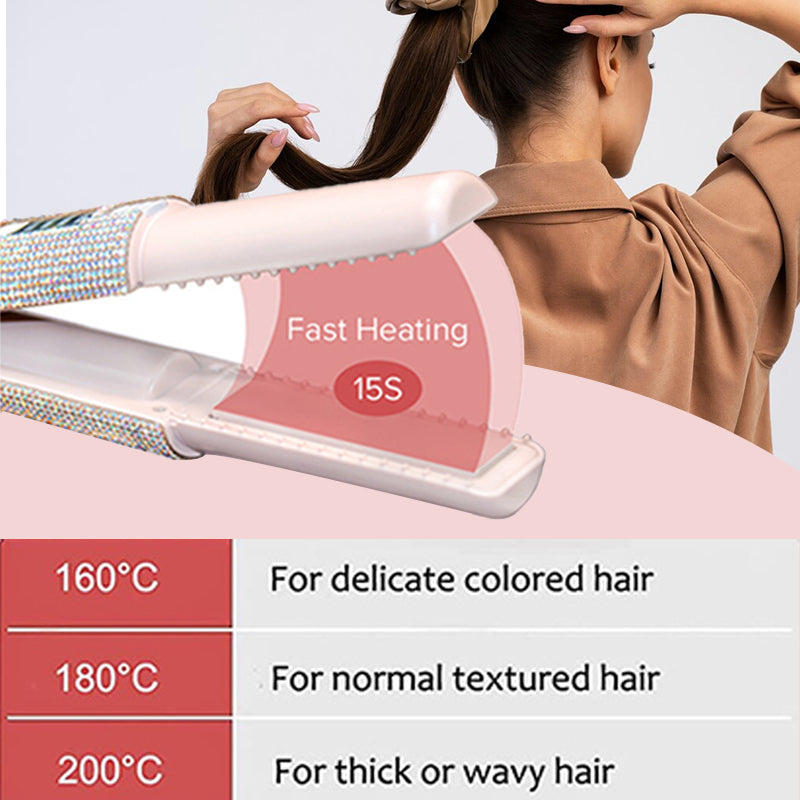 GORGEOUS RHINESTONE EMBELLISHMENTS - Adds a touch of glamour to the straightening & curling hair iron, making it beautiful and magnificent.