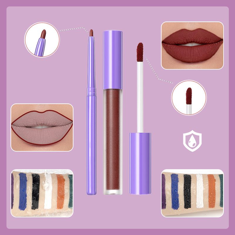 This Waterproof and Non-stick Matte Lipstick Gloss & Lip Liner set offers the perfect combination for achieving beautiful, long-lasting lip color. The matte lipstick provides a velvety smooth finish that lasts throughout the day, while the lip liner helps define and shape your lips with precision.