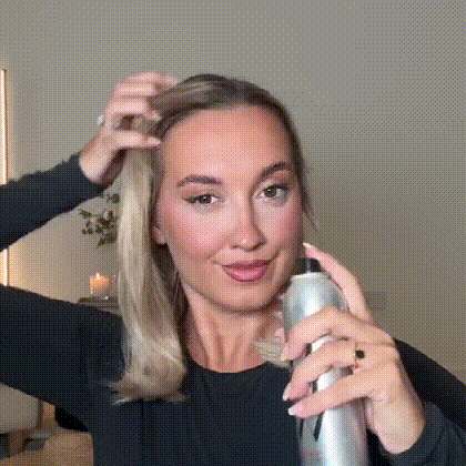 - Apply Fluffy Volumizing Hair Spray to SLIGHTLY DAMP hair (dry hair is fine) and work through with fingers or a comb