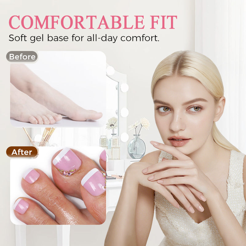 COMFORTABLE AND SECURE FIT: The soft gel base prevents ingrown toenails and ensures a snug, comfortable fit, allowing you to wear these press-on nails all day without discomfort.